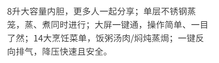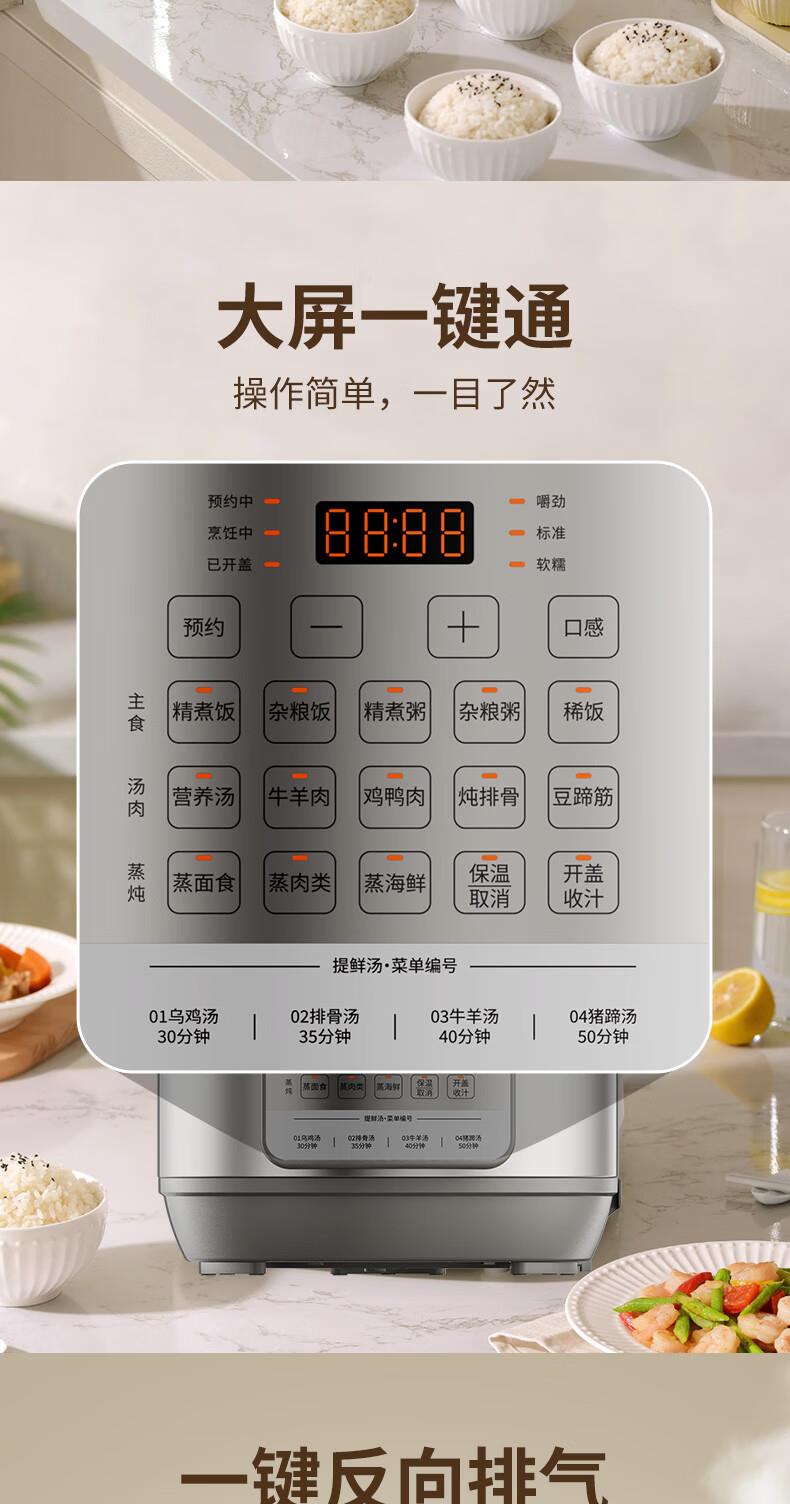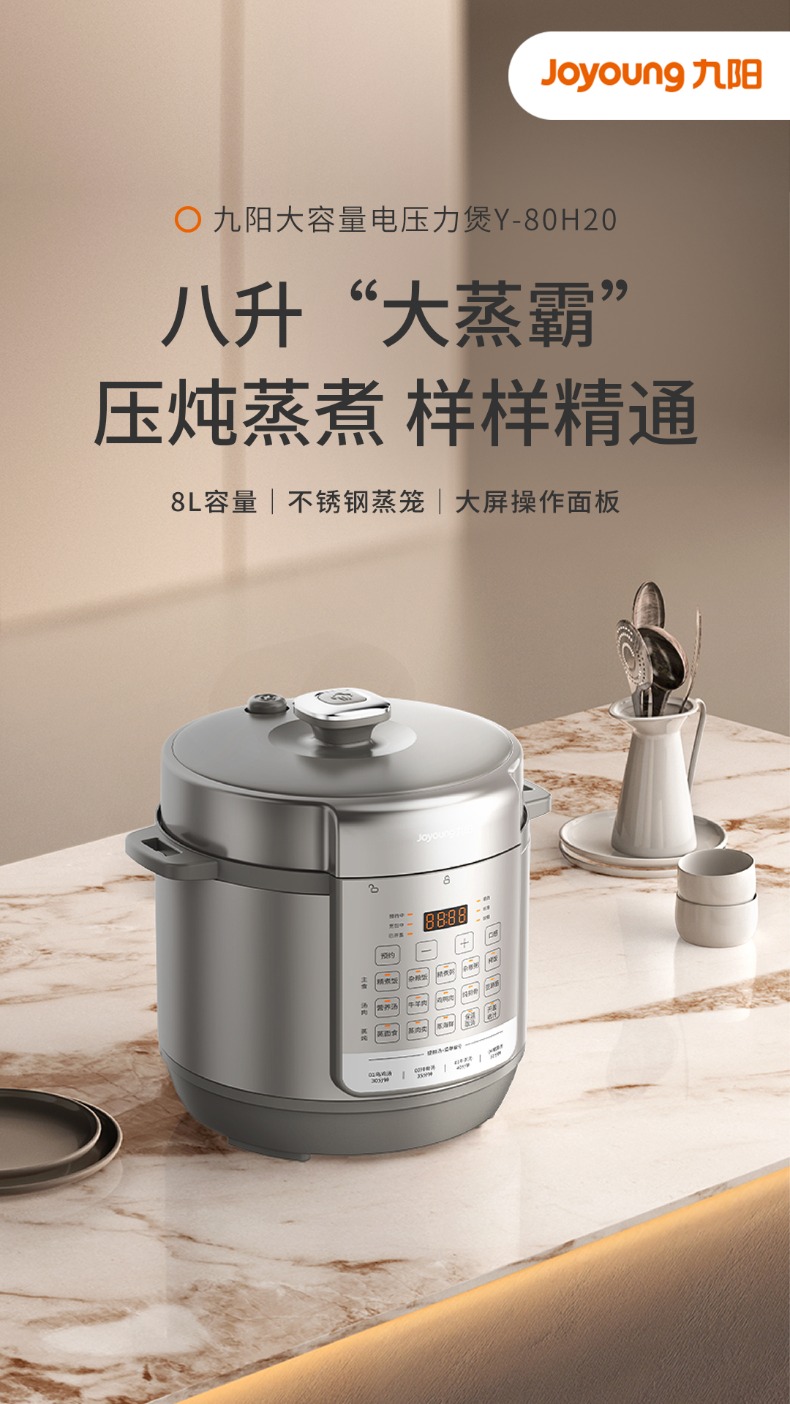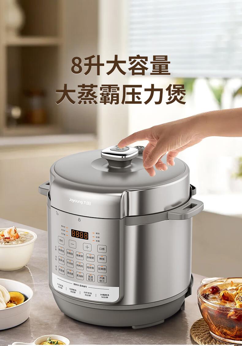 九阳8L大容量电压力煲家用智能预约不锈钢蒸笼高压锅饭煲电压力锅