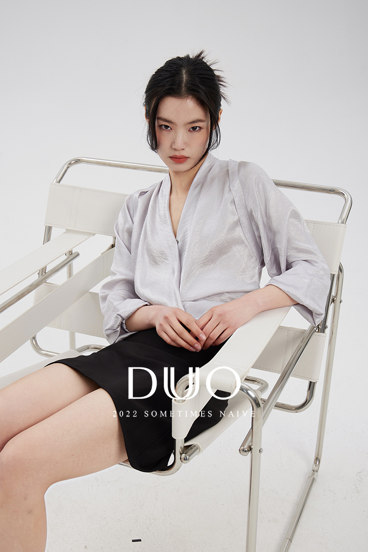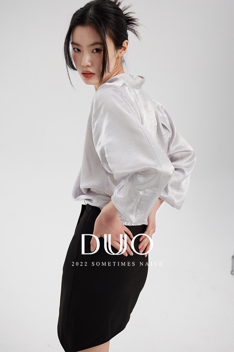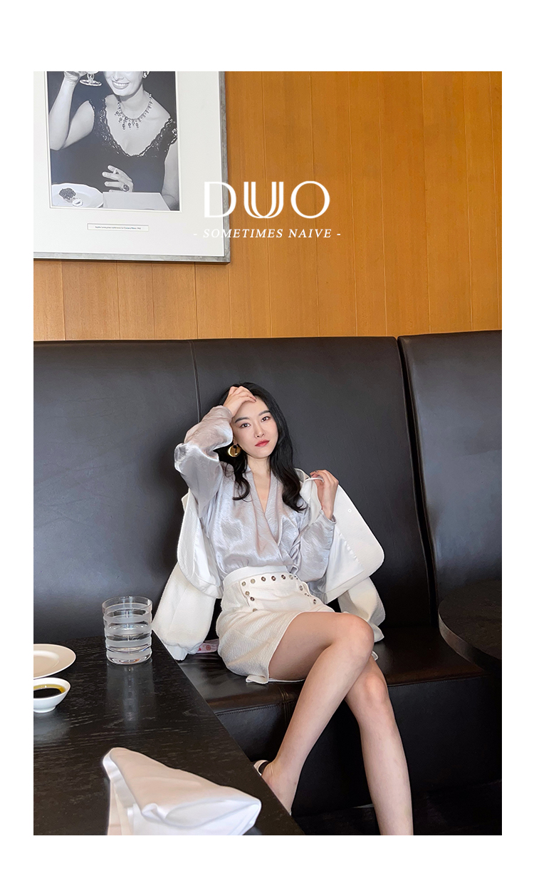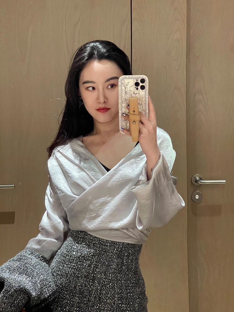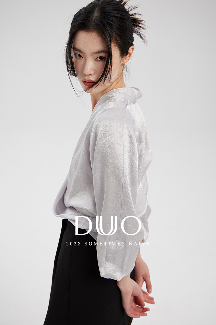天文爱情学银色进口日本醋酸深V衬衫