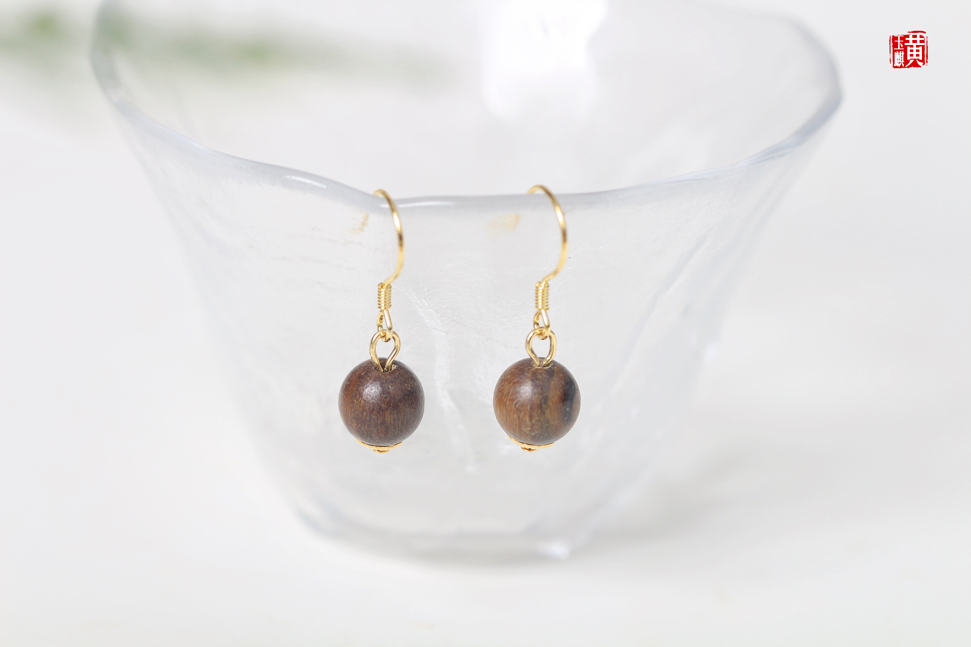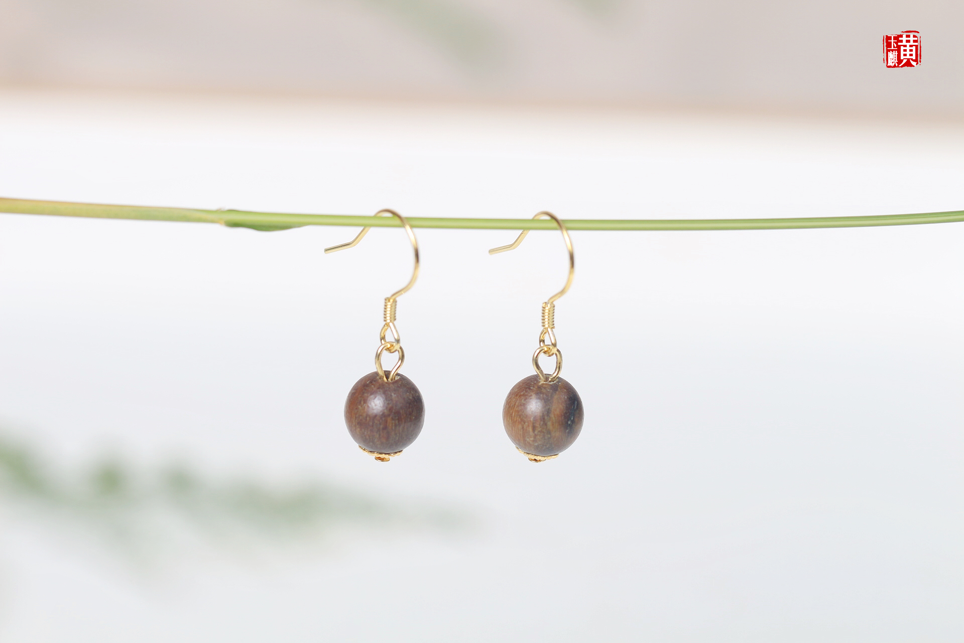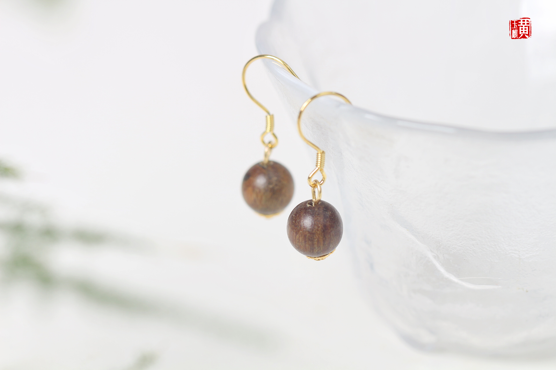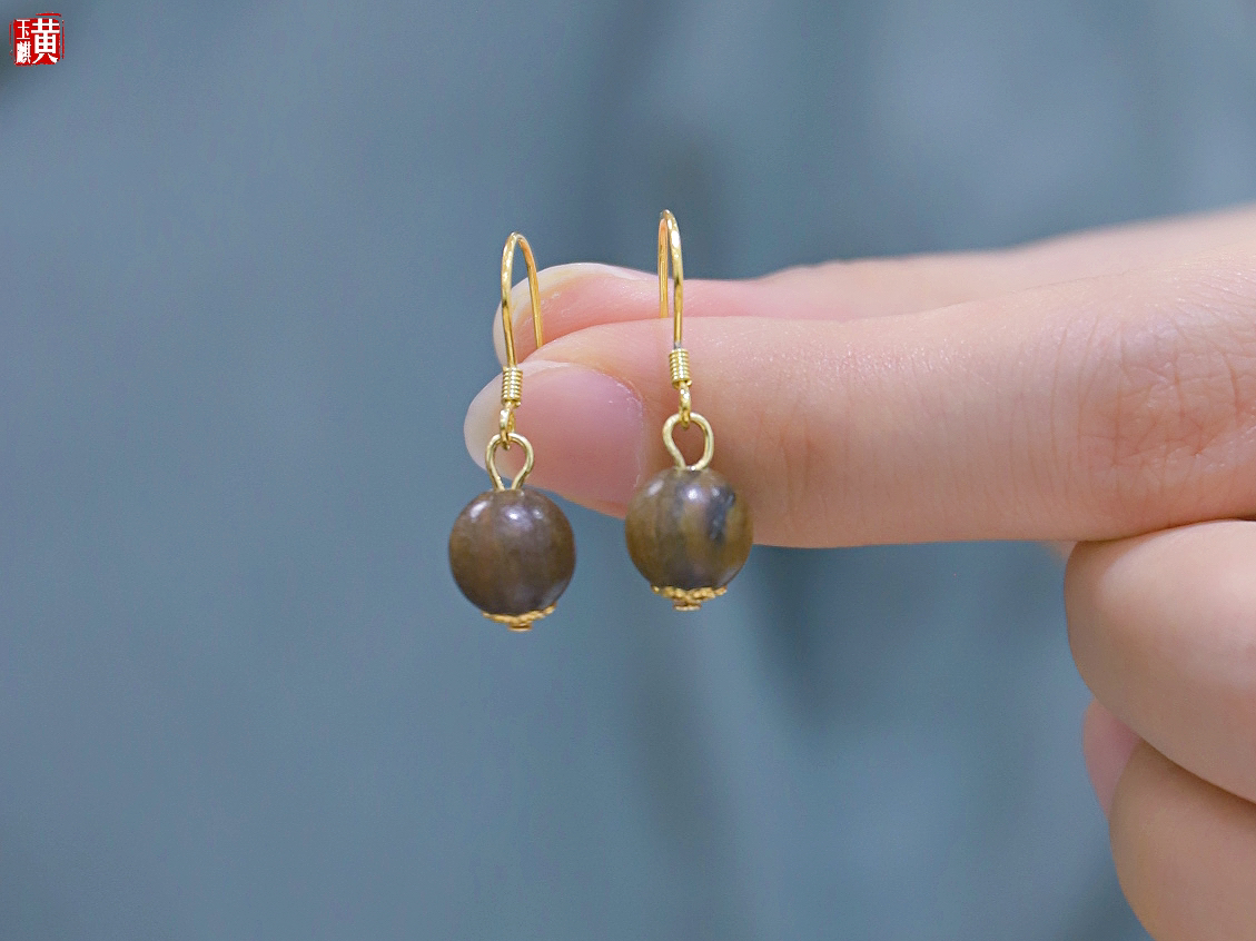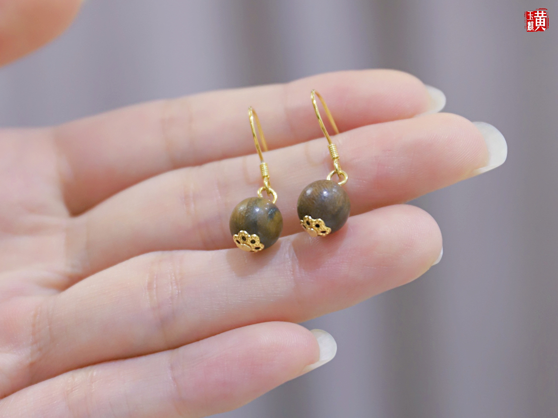 绿檀木耳坠,925银耳钩