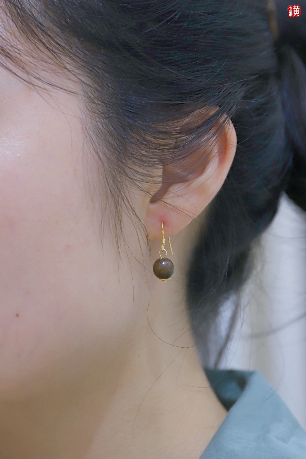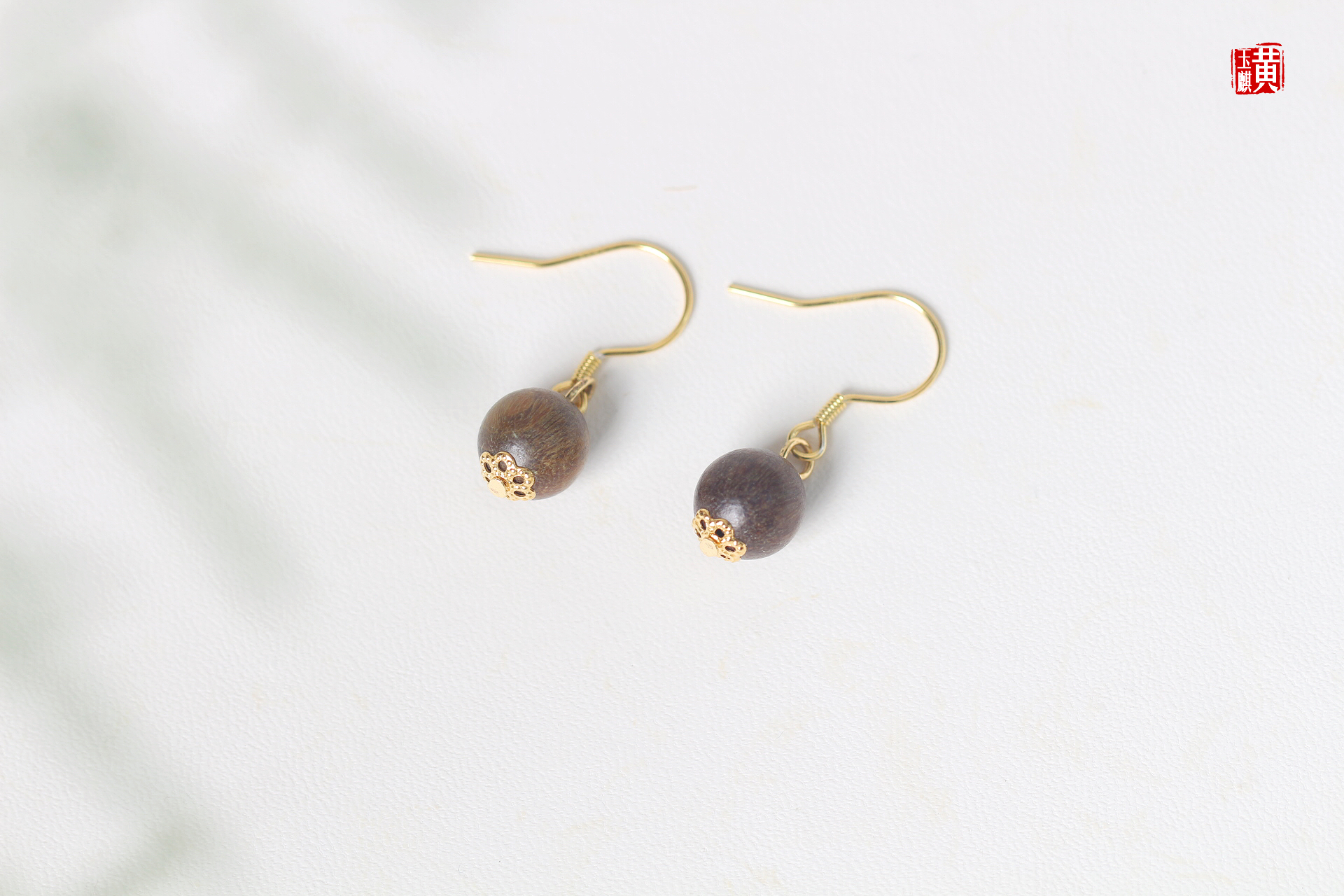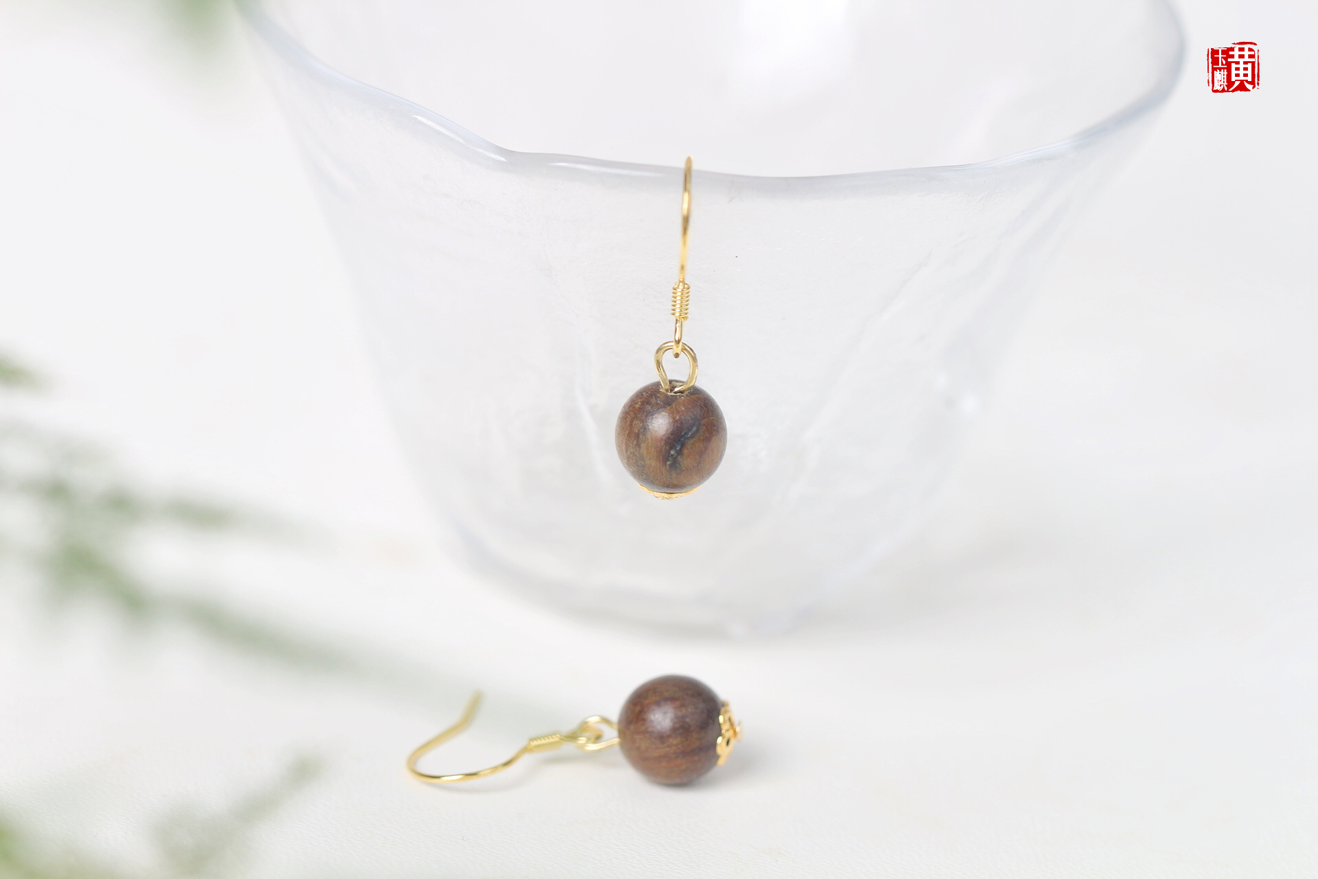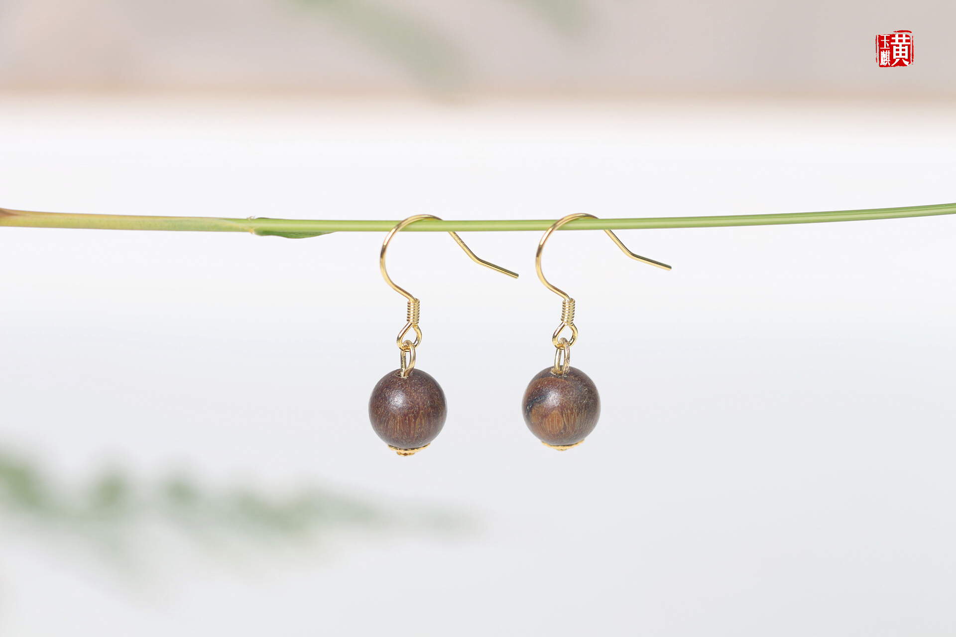 绿檀木耳坠,925银耳钩