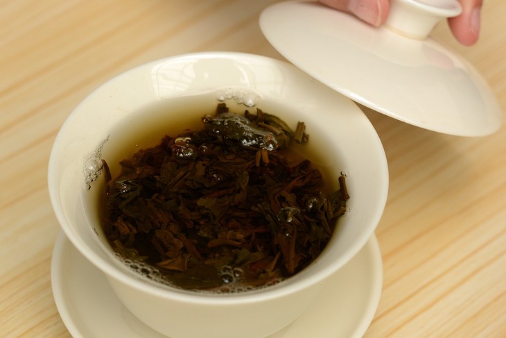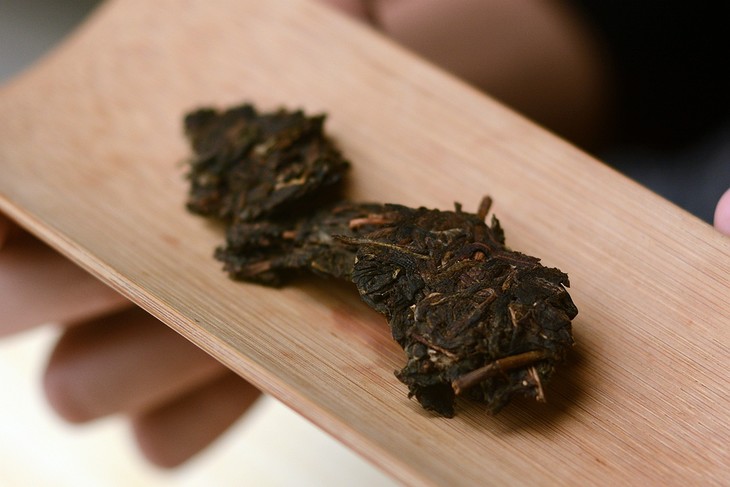 湿香:松烟香浮动(这是下关茶的特征之一),陈香萦绕,香气厚重,一室可闻其香