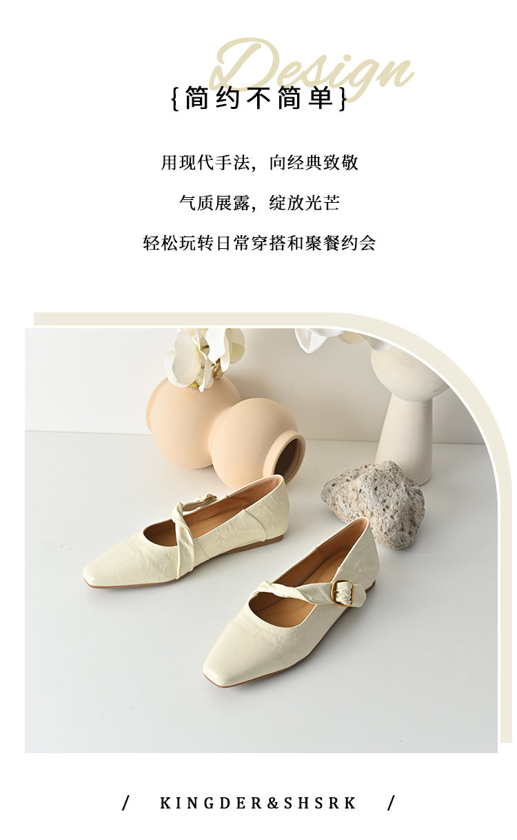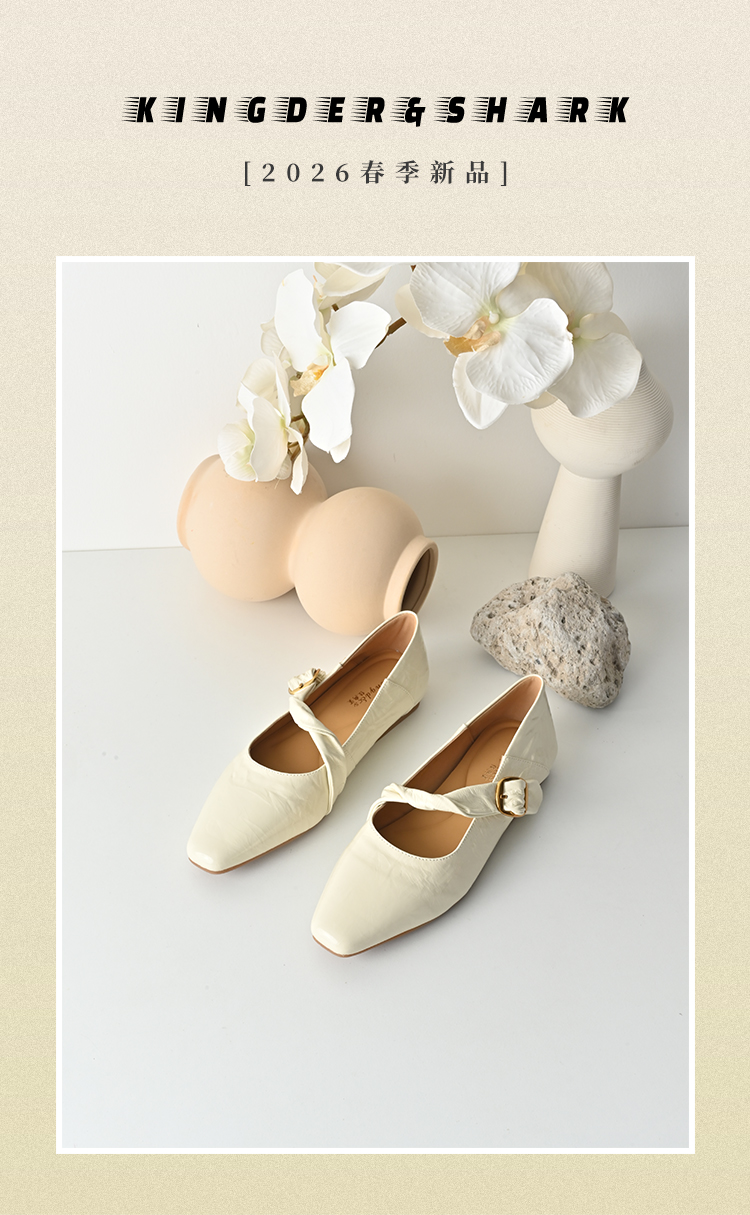 经典鲨2026年春专柜新品牛皮革纯色简约舒适平底通勤单鞋女鞋KW117-617021
