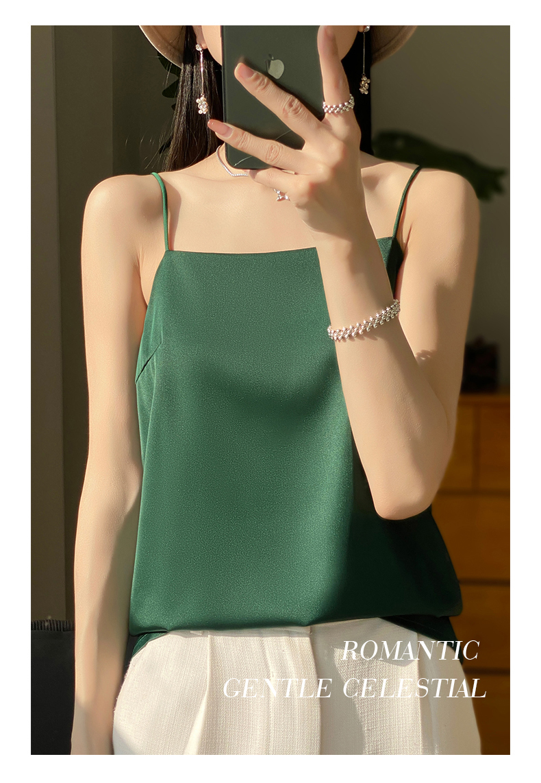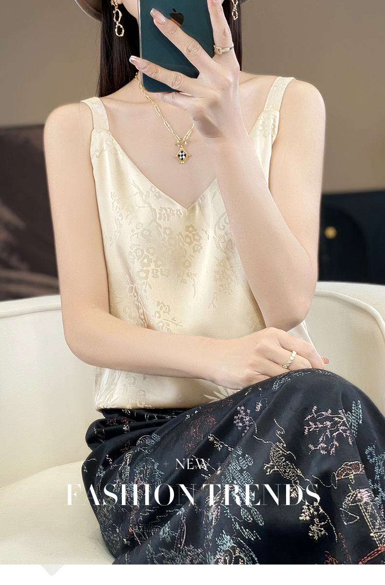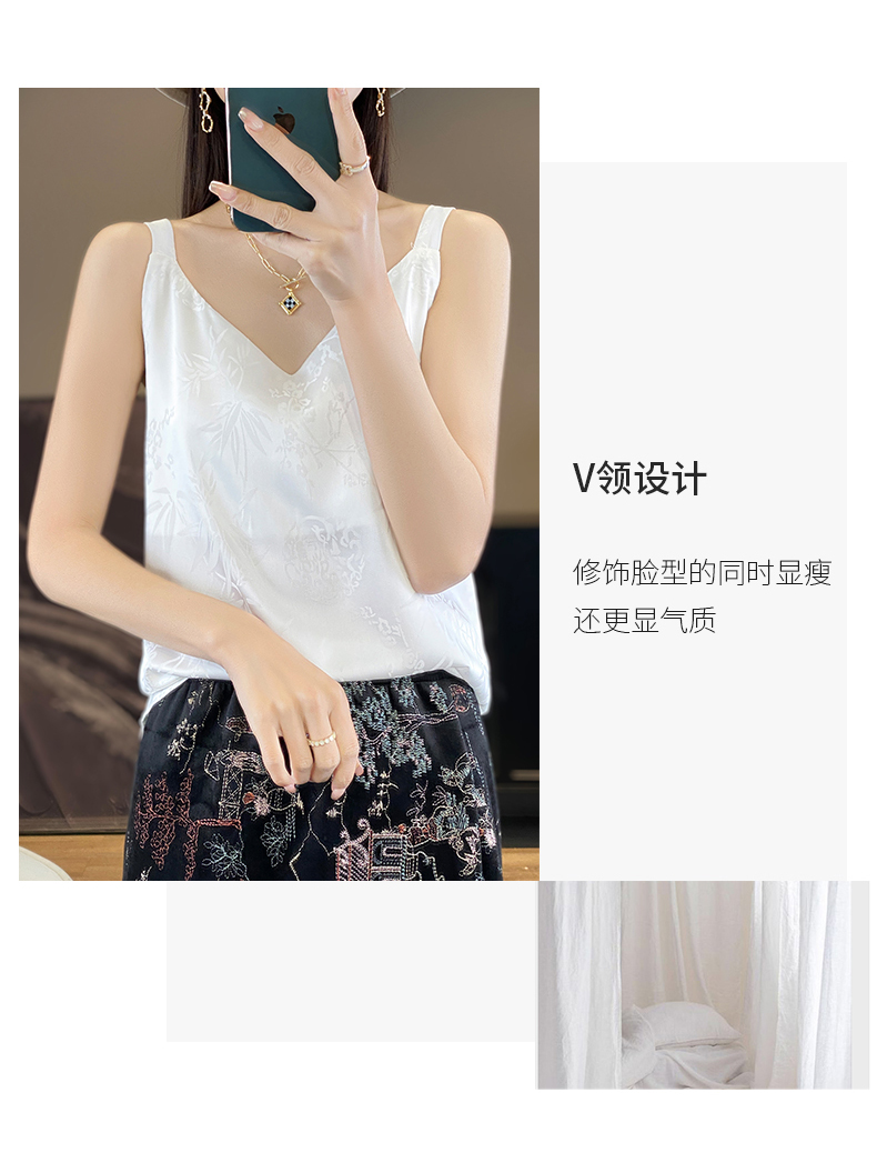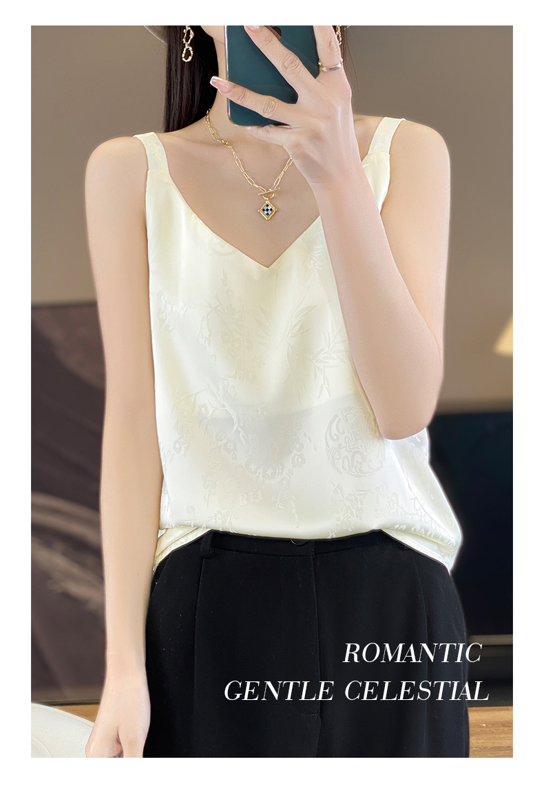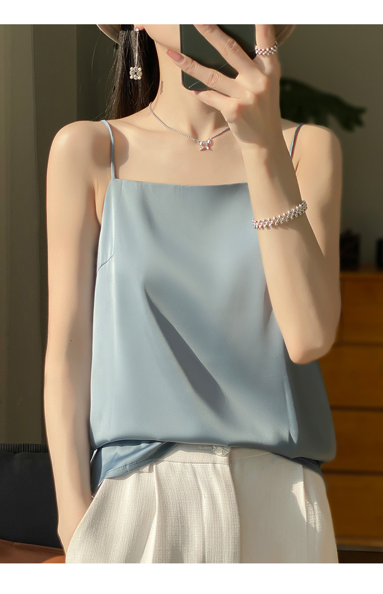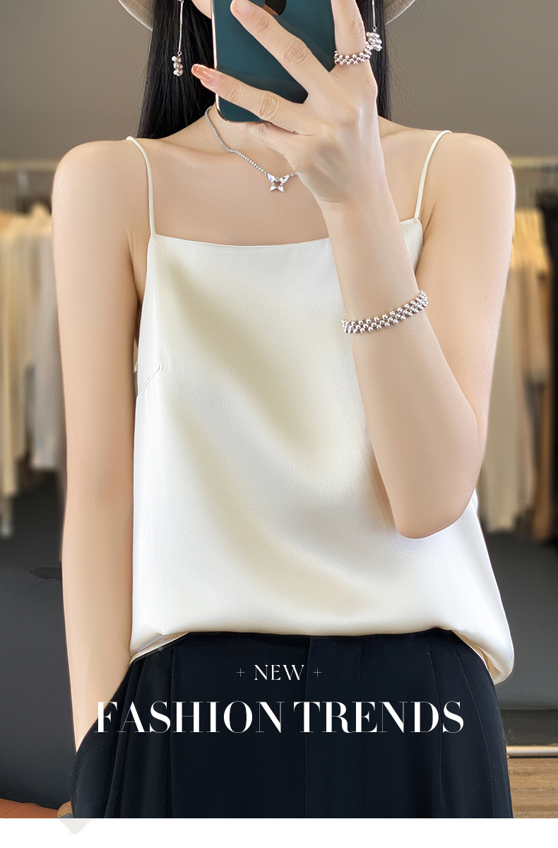 奥伊米夏季女奢华光泽丝滑仿真丝百搭V领一字领背心吊带