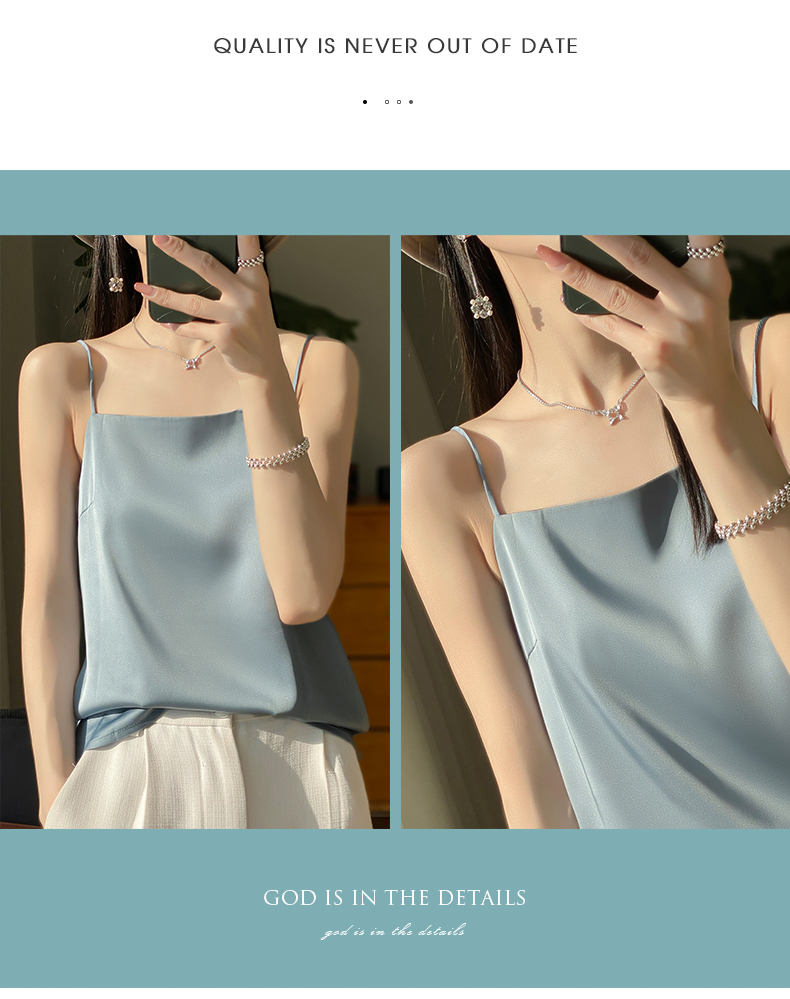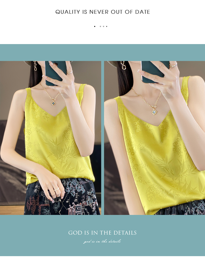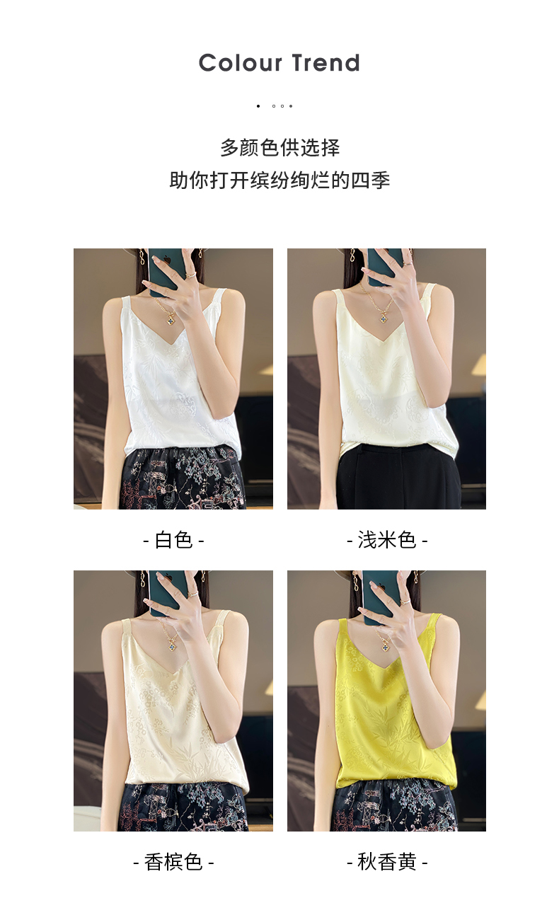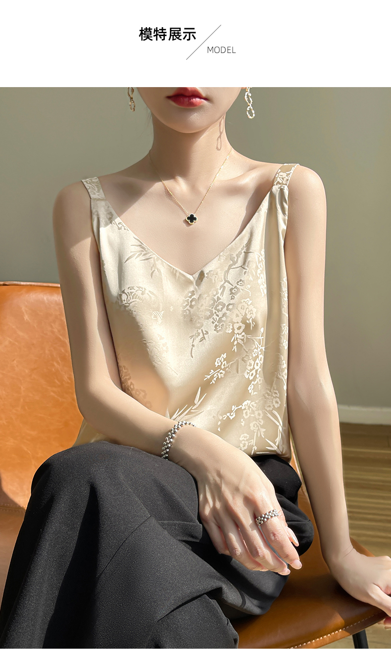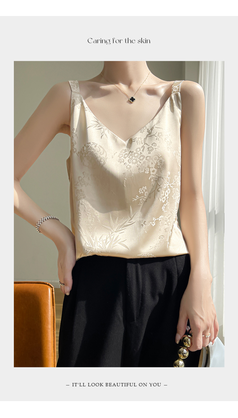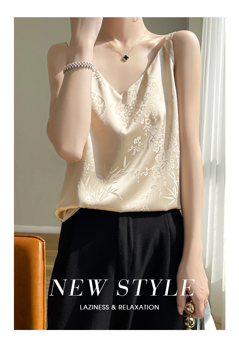 奥伊米夏季女奢华光泽丝滑仿真丝百搭V领一字领背心吊带