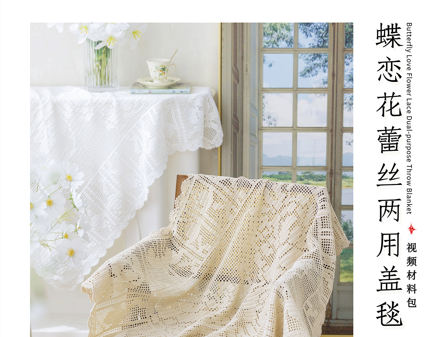 苏苏姐家蝶恋花蕾丝两用盖毯手工DIY钩针毛线团自制材料包