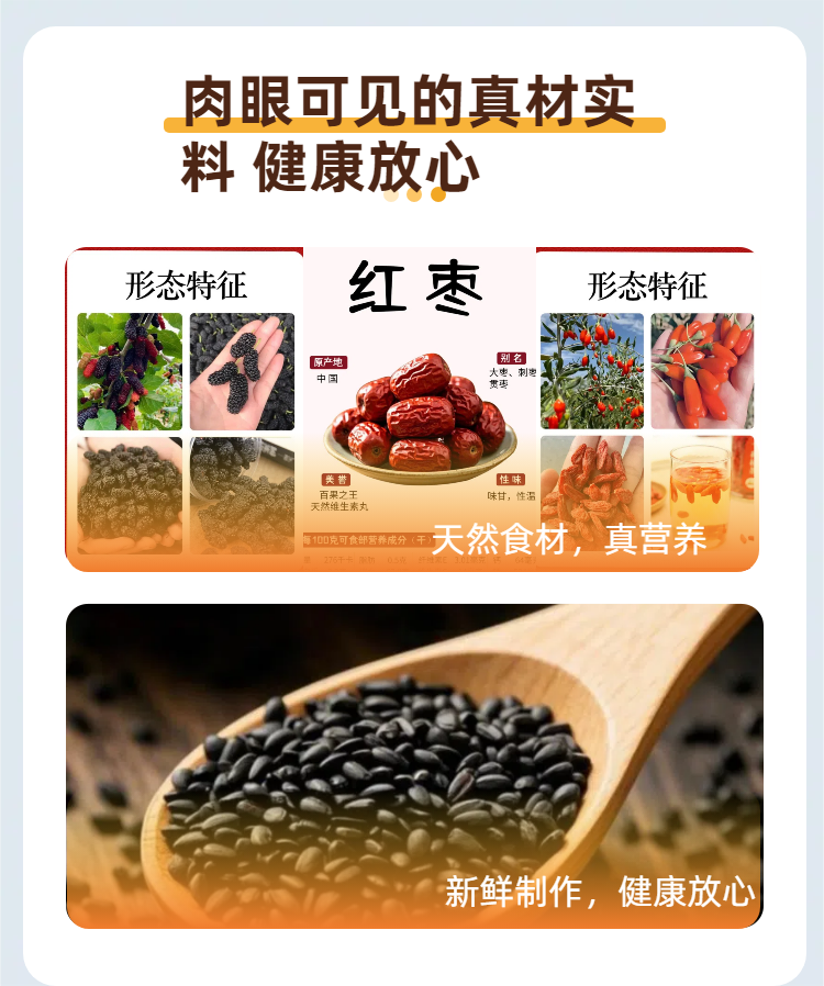 【品名】天鲜萌红枣枸杞桑葚黑芝麻丸 【规格】300g/箱 【保质期】90天 【配料】熟黑芝麻、麦芽糖浆、红枣、枸杞、核桃仁、桑葚、食用植物油 【储存方法】请置于阴凉干燥处,避免阳光直射 【产地】安徽芜湖 【发货地】安徽芜湖 【发货快递】中通为主、申通邮政 【不发货区域】新疆,西藏,青海,港澳台地区不发 【补邮费地区】内蒙、甘肃、宁夏、海南 、北京、上海加1元 【发货时效】48小时,节假日顺延 |