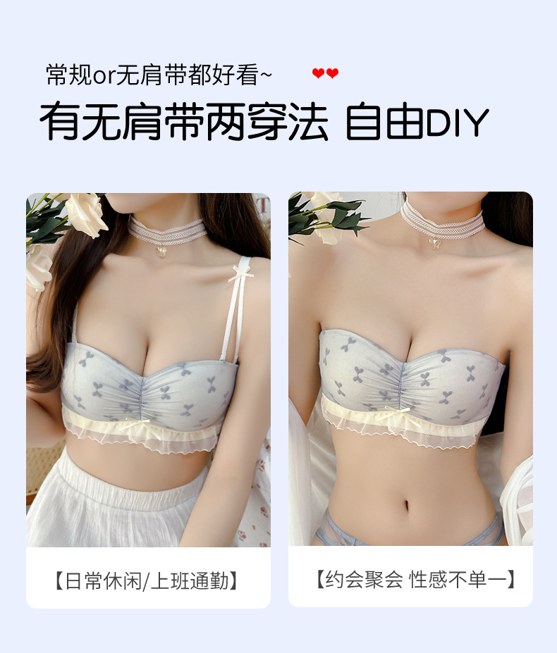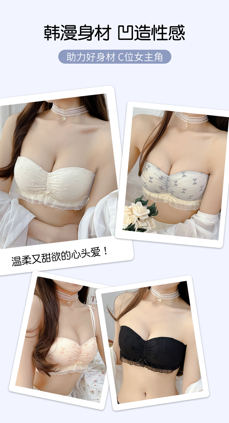 【升杯小聚蛋!辣妹妈生感C胸内衣】无感轻薄,防滑露肩,狂甩不掉,日系性感br蕾丝无肩带文胸防滑小胸聚拢柔软无钢圈防下垂收副乳罩