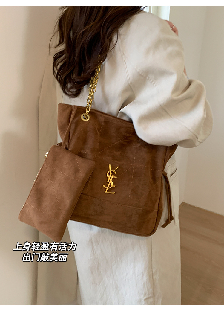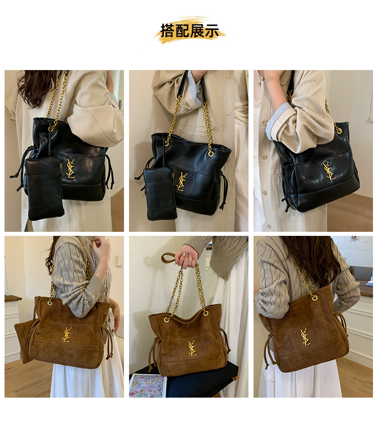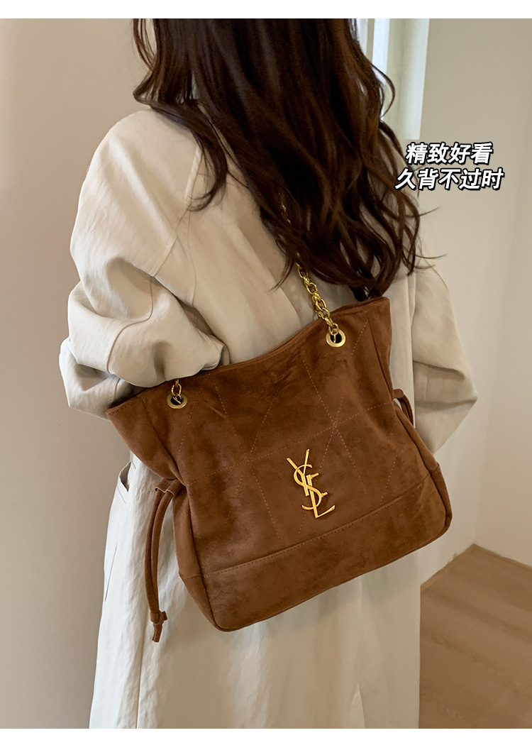 【原创爆款❗️条麂皮抽绳福袋包】设计感十足自带秋冬氛围感,精致好看久背不过时,多色可选彰显个性魅力,2025新款链古铜色五金时尚百搭单肩托特包