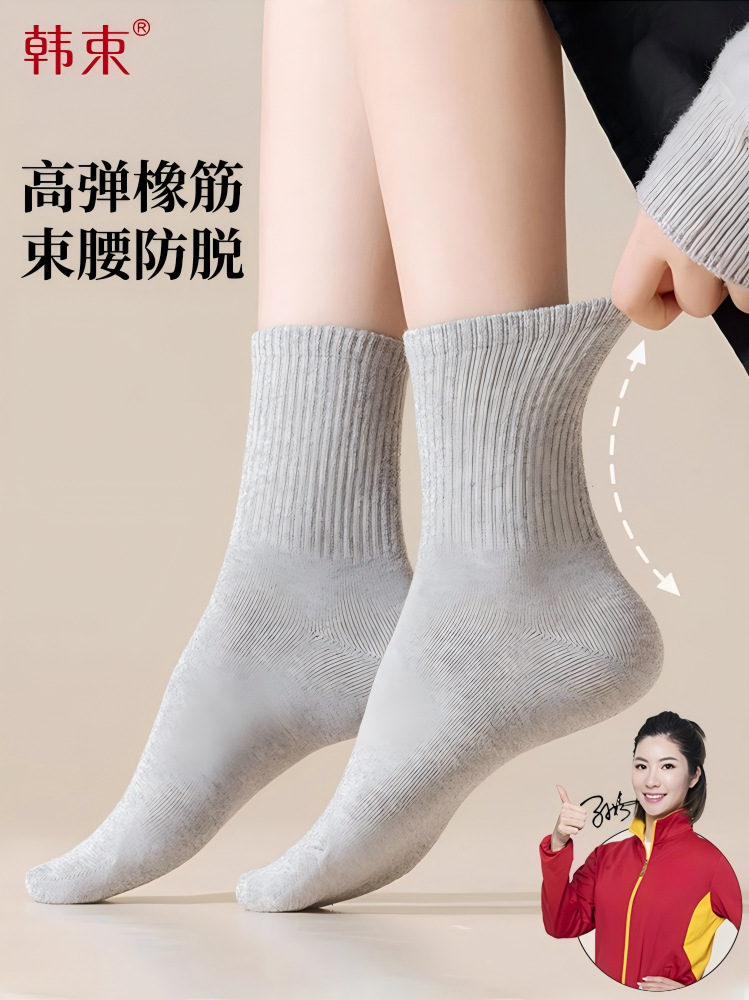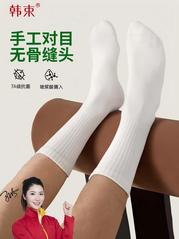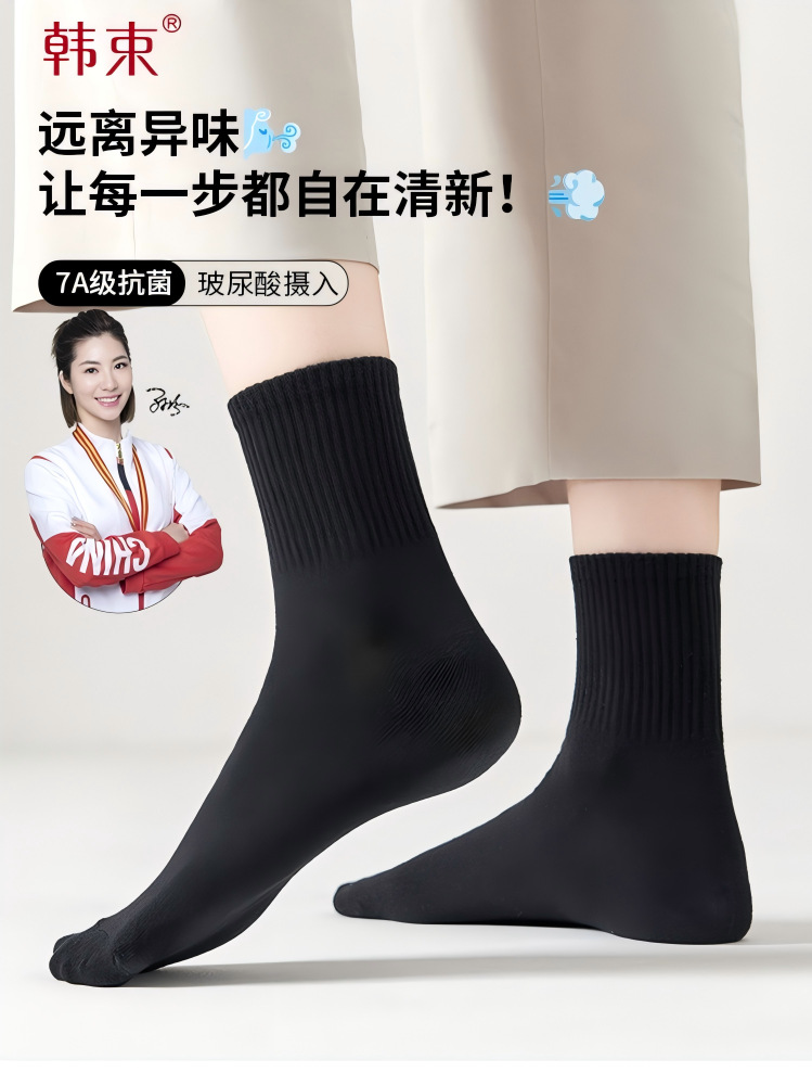 【拒绝干燥!韩束玻尿酸7A防臭袜】穿在脚上的护肤品,运动吸汗透气干爽舒适无骨缝合纯棉中筒袜