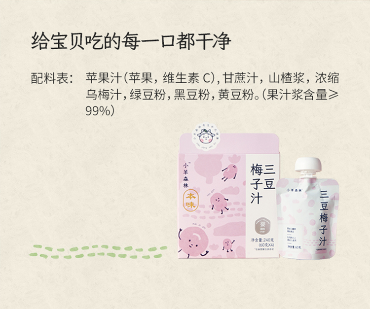 婴标「三豆梅子汁」 轻微实火 生津 一袋99%都是果汁