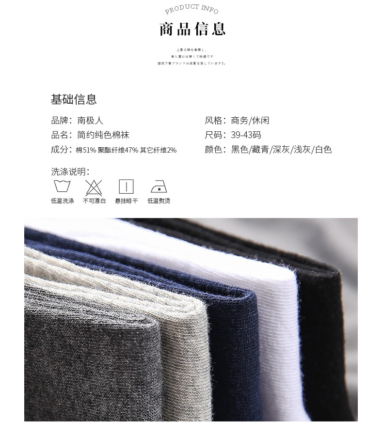 秋冬男士纯棉抗菌棉袜5双 秋冬女士精梳棉棉袜5双