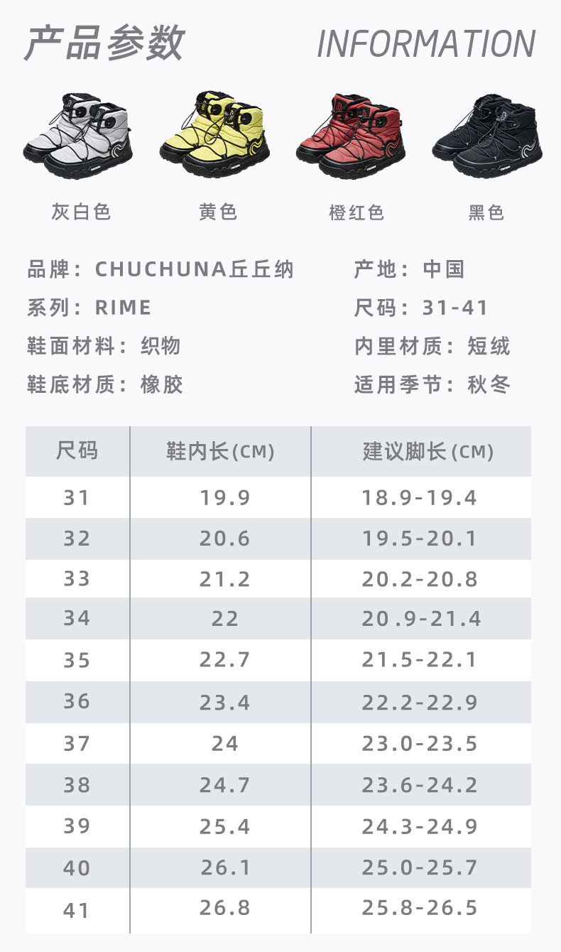 CHUCHUNA 25新秋冬冰面止滑休闲舒适保暖亲子雪地靴