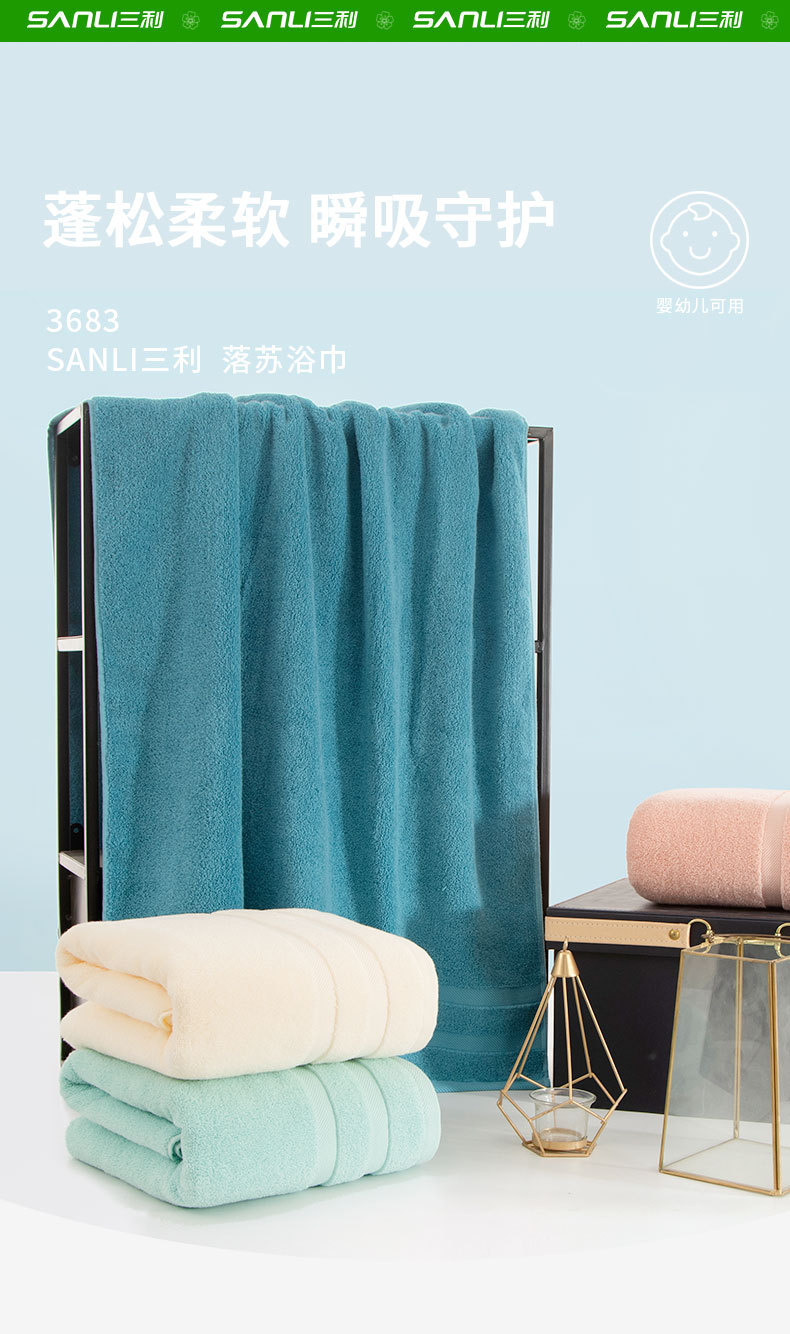 三利塔罗抗菌浴巾纯棉家用男女情侣儿童婴儿毛巾柔软吸水速干裹巾