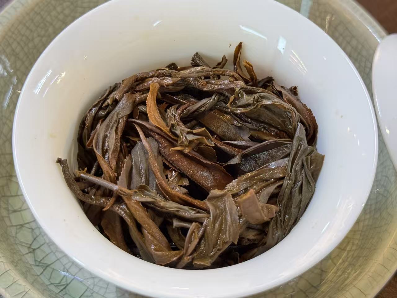 第三道,叶底活性足,成色均匀,发酵到位,熟透即止,过而不及,“度”是珍惜原料、追求品质、技艺水平的一个重要表现点。