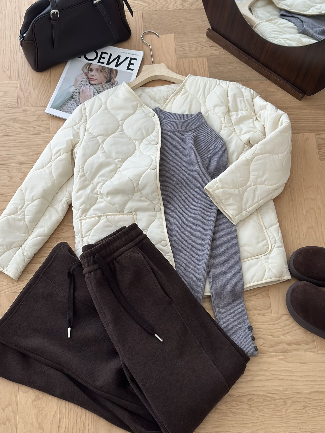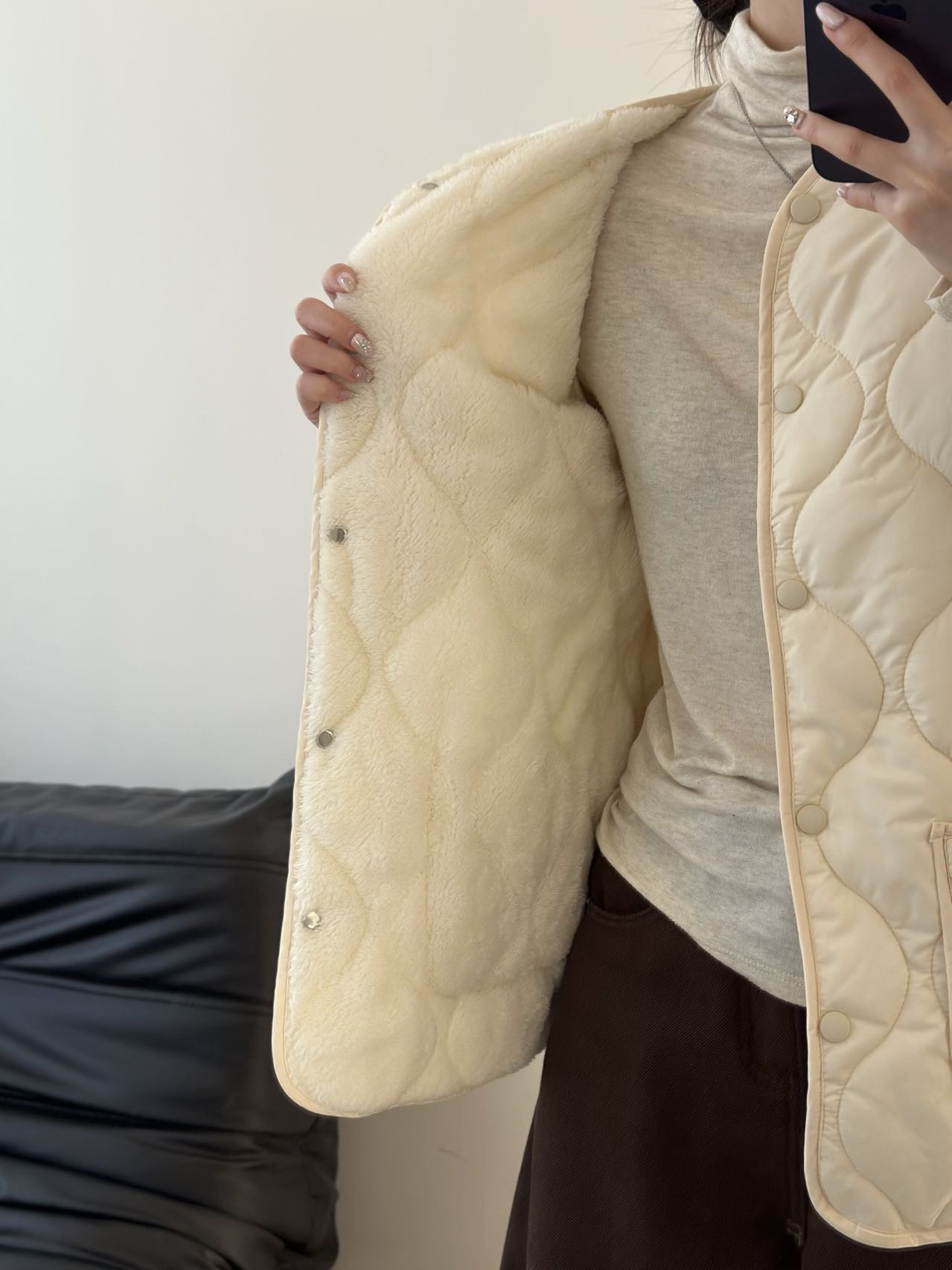 内里毛绒满满包裹感,既保暖又不会显得臃肿。