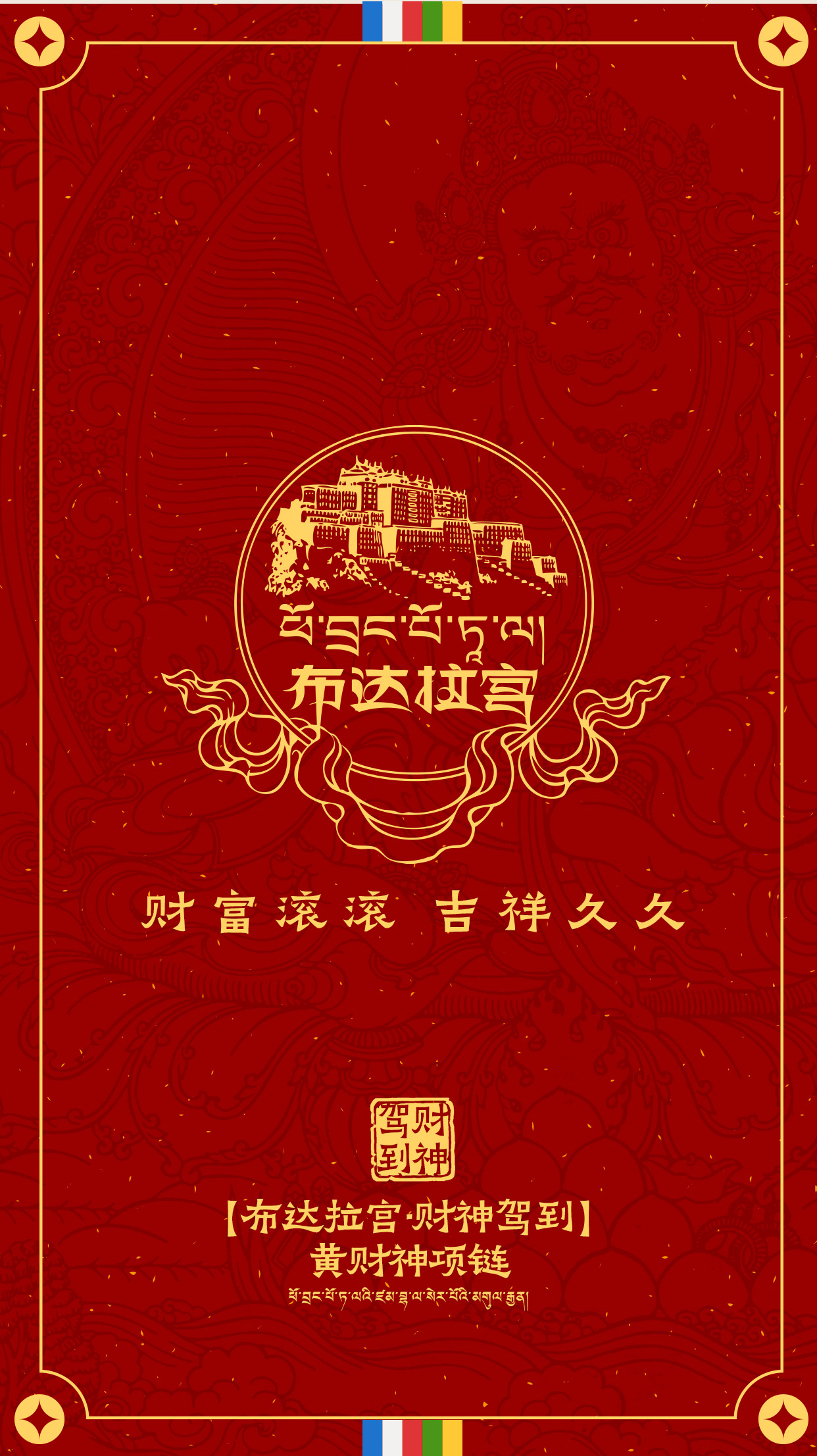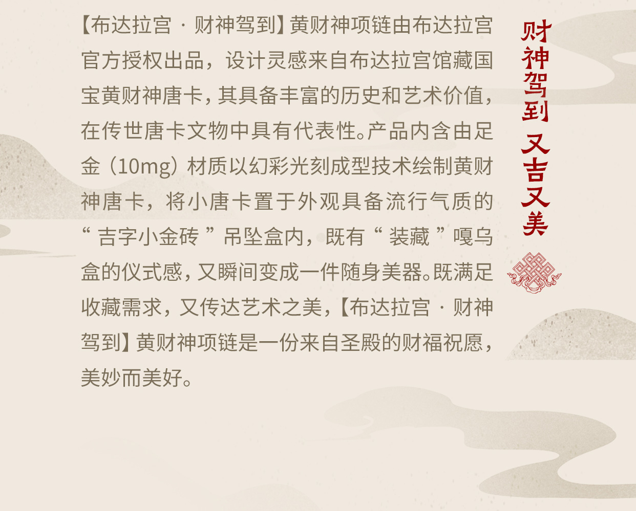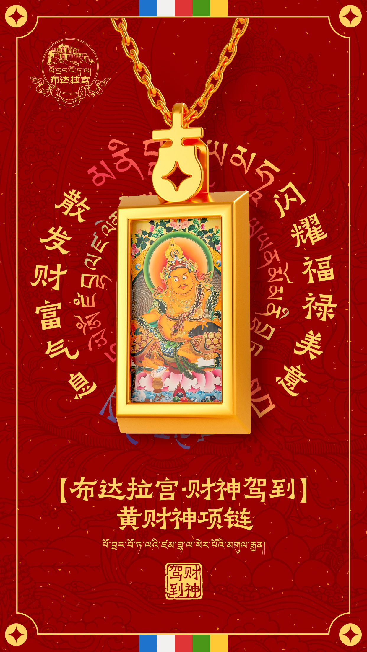热卖中!!布达拉宫·小唐卡黄财神吊坠项链(含999足金10mg)