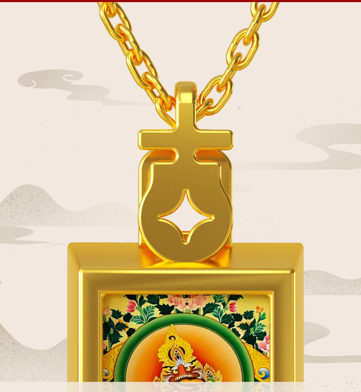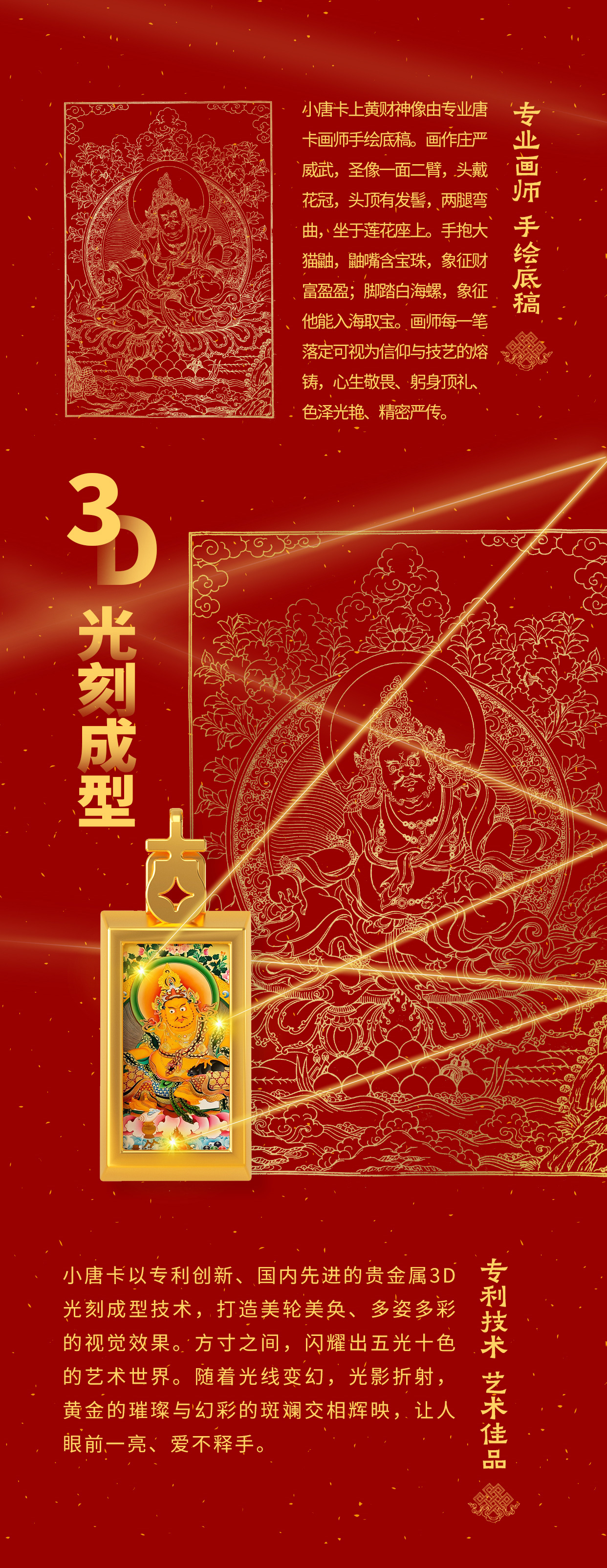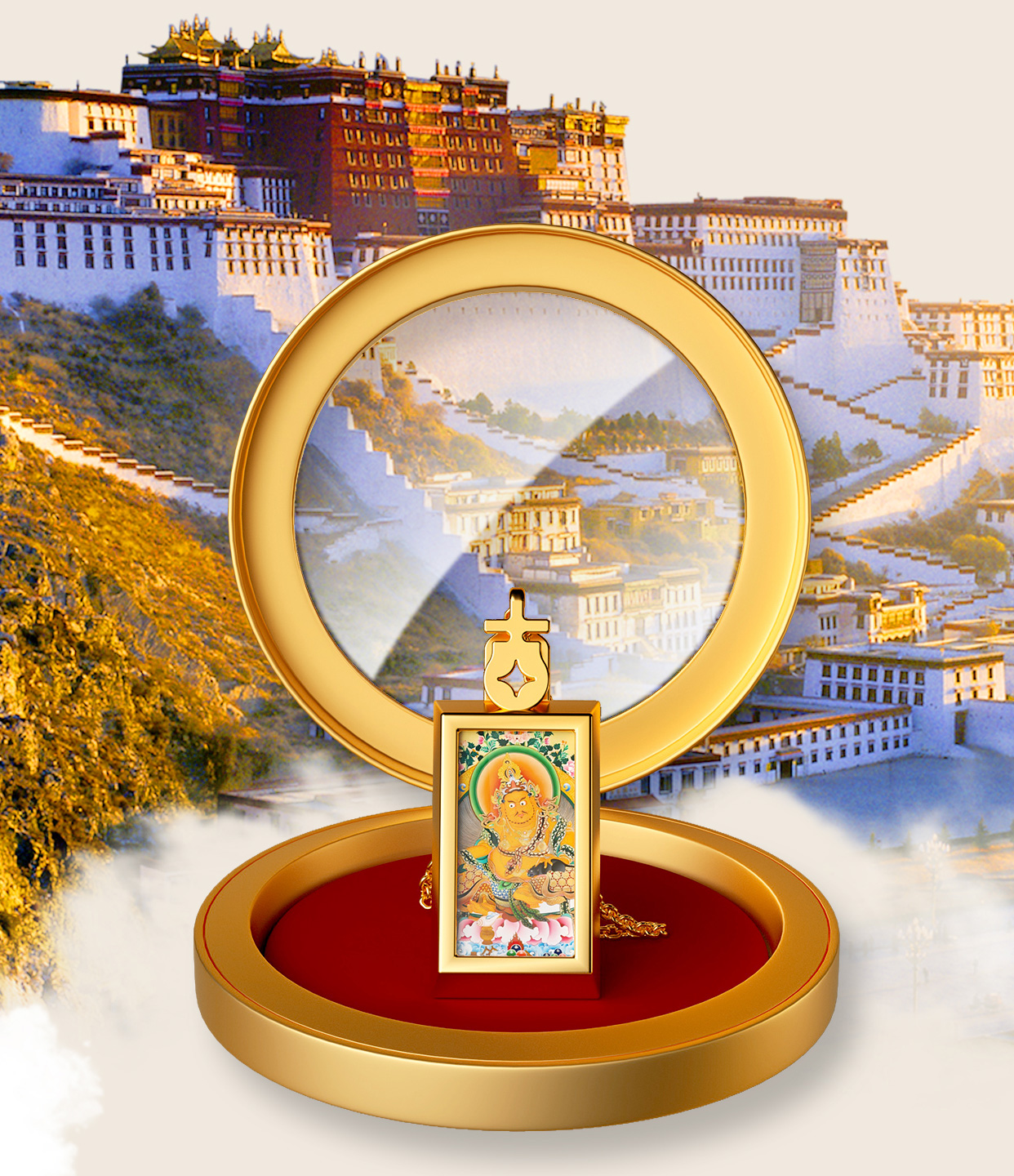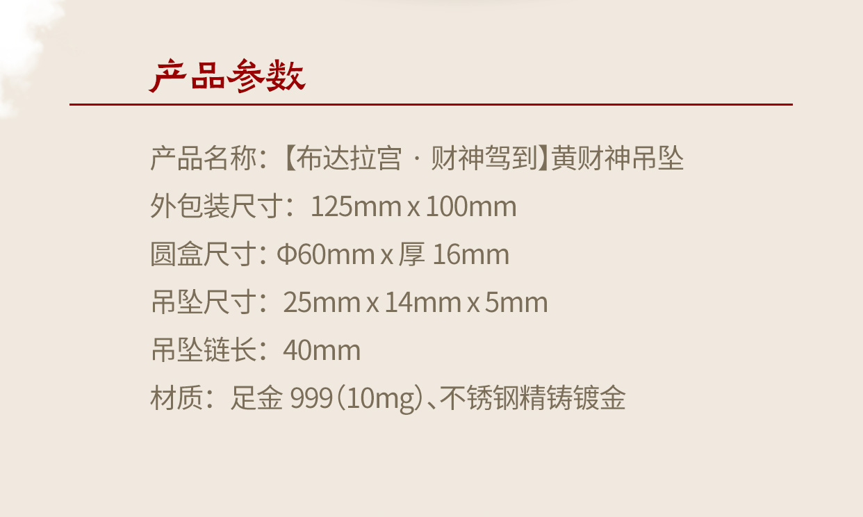 热卖中!!布达拉宫·小唐卡黄财神吊坠项链(含999足金10mg)