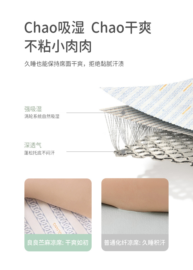【纯苎麻凉席】良良婴儿苎麻凉席新生儿宝宝幼儿园儿童床凉席夏季婴儿床席子