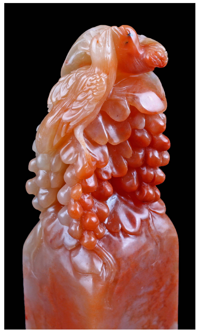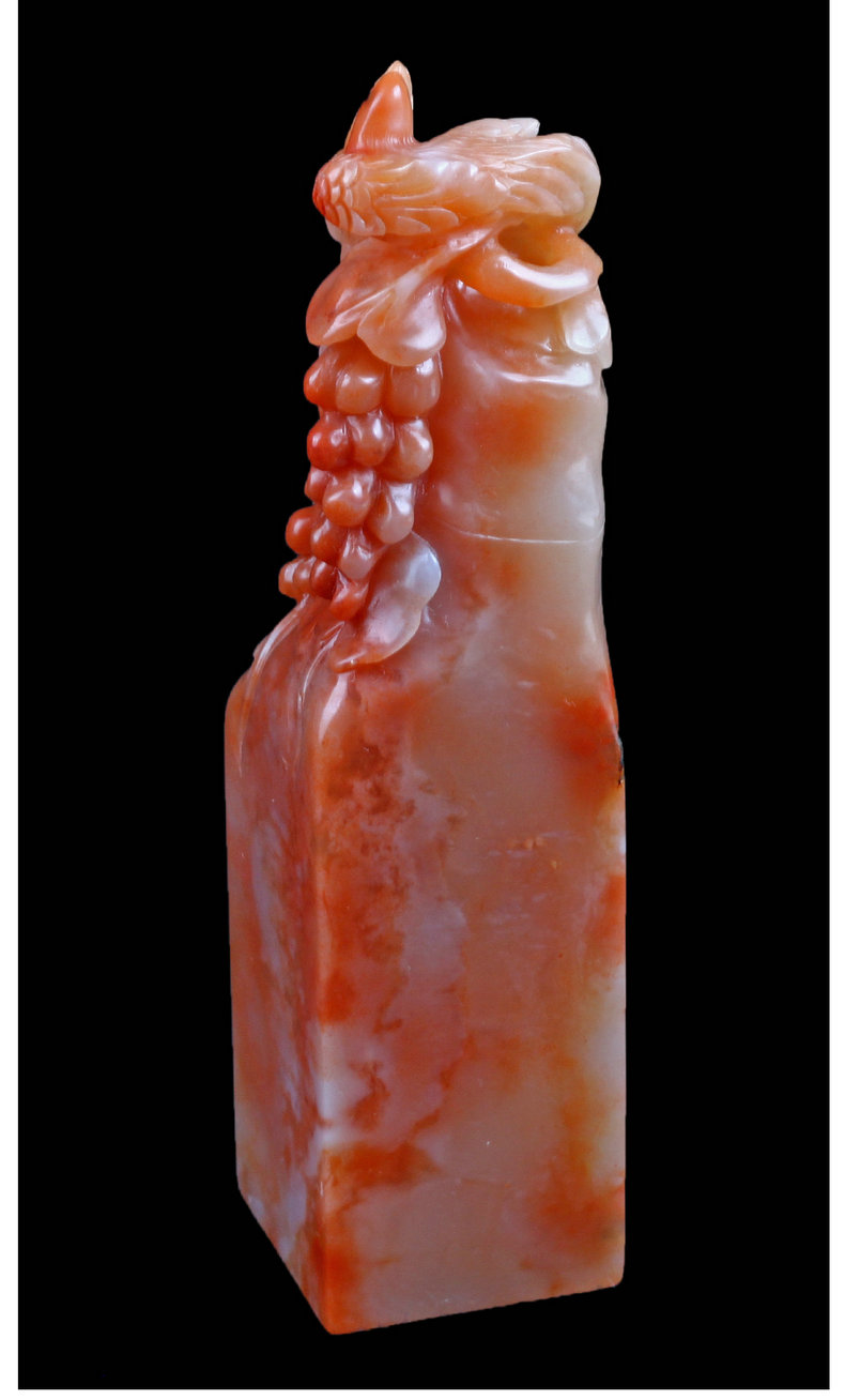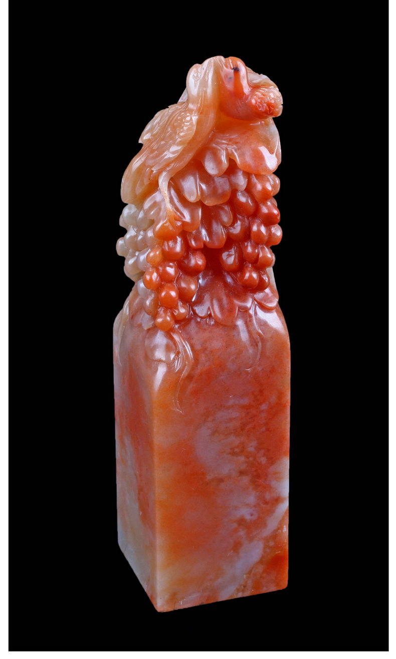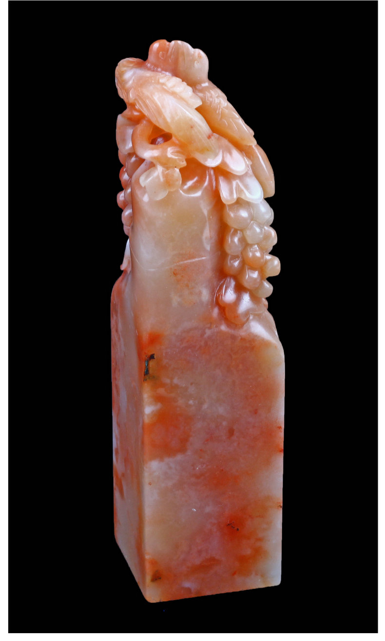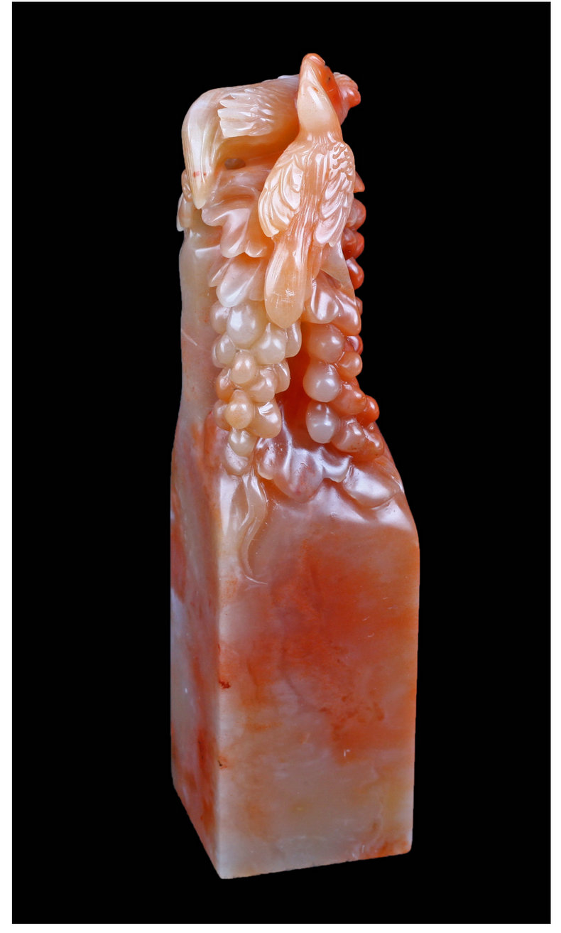 【金石印坊】老挝石桃花冻花鸟钮方章-012116-3.5*3.4*14.0cm