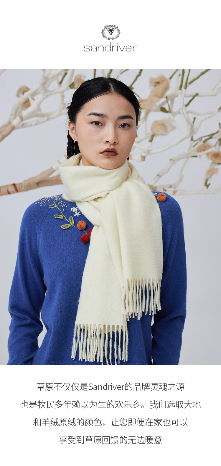历年在巴黎时装周亮相,享誉世界的艺术羊绒品牌[Sandriver 沙涓]由羊绒布道者郭秀玲女士创立。阿拉善自有牧场纯种羔羊绒,日本国宝设计师小筱顺子,上海自有基地精工细作。承载羊绒情怀,坚持匠人品质。