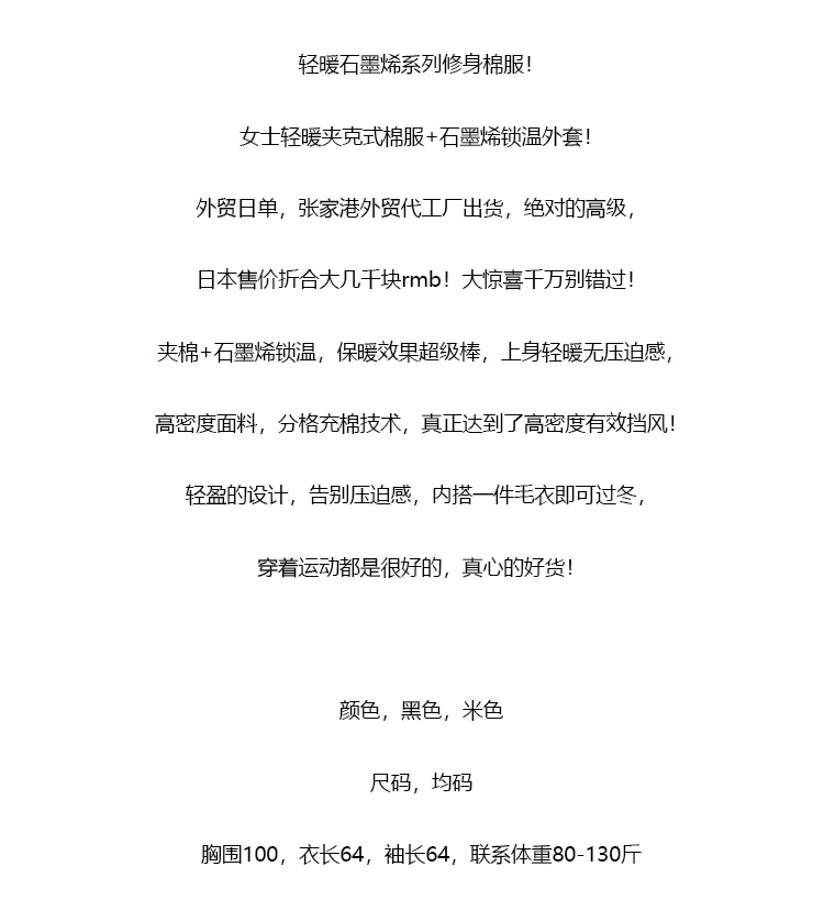【hl1】女士轻暖石墨烯修身轻盈保暖棉服!!