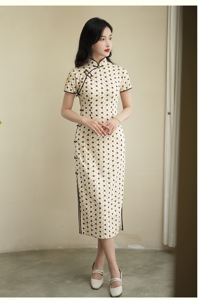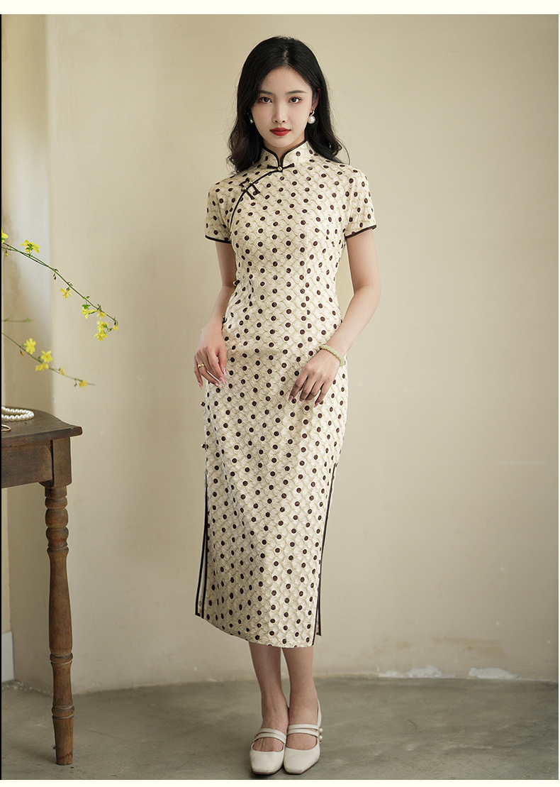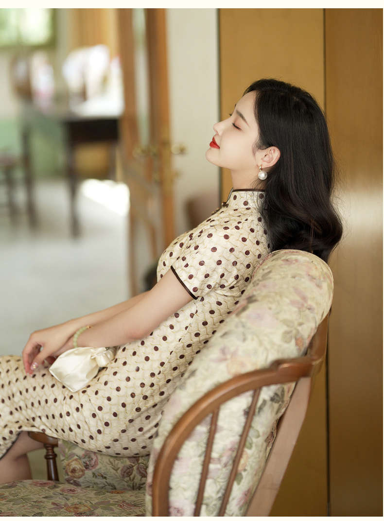 逸红颜凝玉2025夏季新款旗袍改良版连衣裙女圆点圆襟复古风旗袍