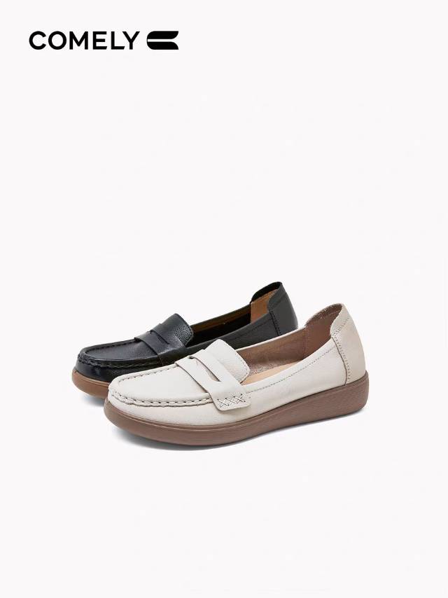 【云粉节】BF楼康莉女鞋舒适坡跟乐福鞋豆豆鞋2025秋款平底鞋一脚蹬简约KHM61010 吊牌价899 活动价439