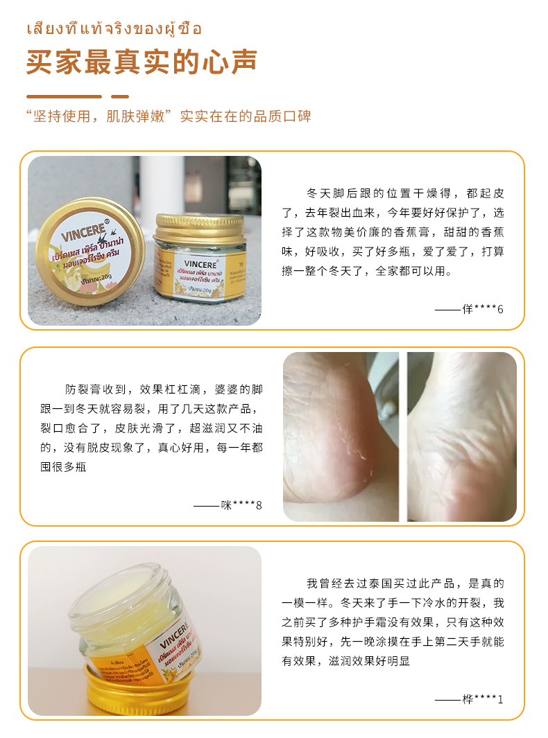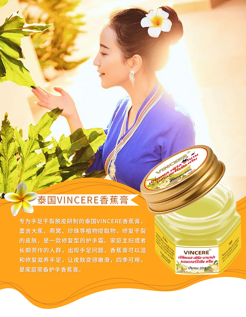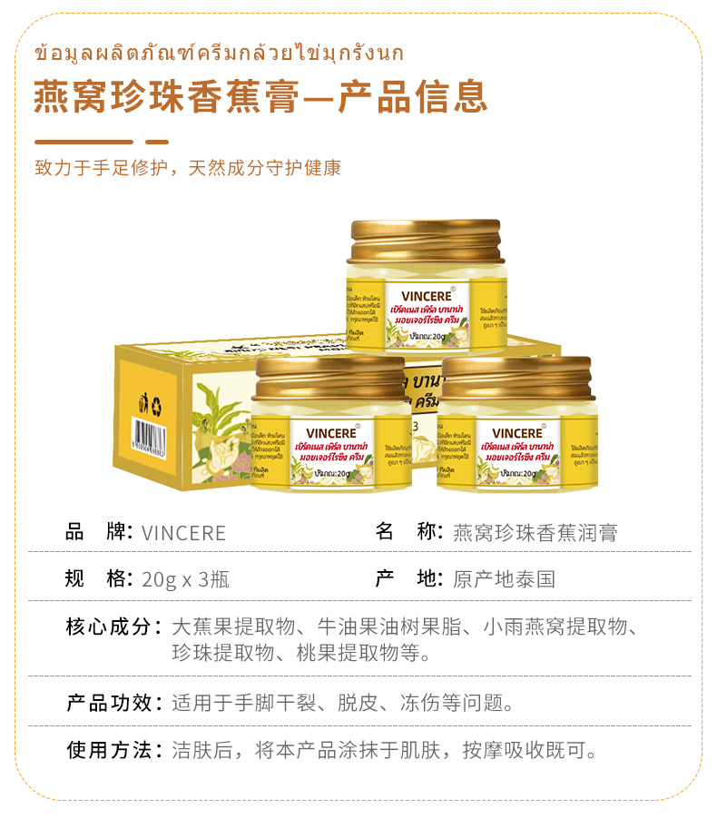 【拍1发3瓶】泰国VINCERE燕窝珍珠香蕉膏 手足裂口、祛老茧、保湿修复、手足脱皮开裂、四季可用