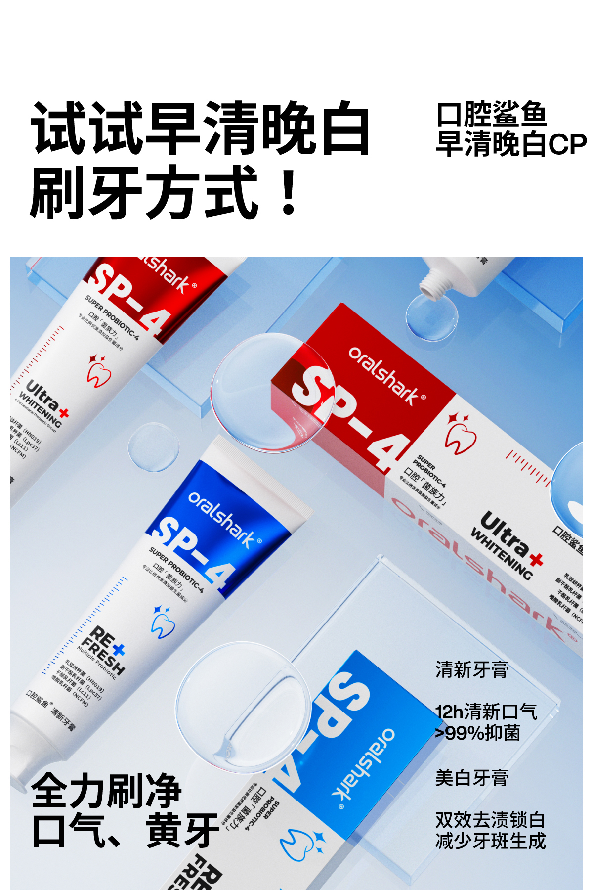 参半Oralshark SP-4美白/清新牙膏【买就送牙刷*2】