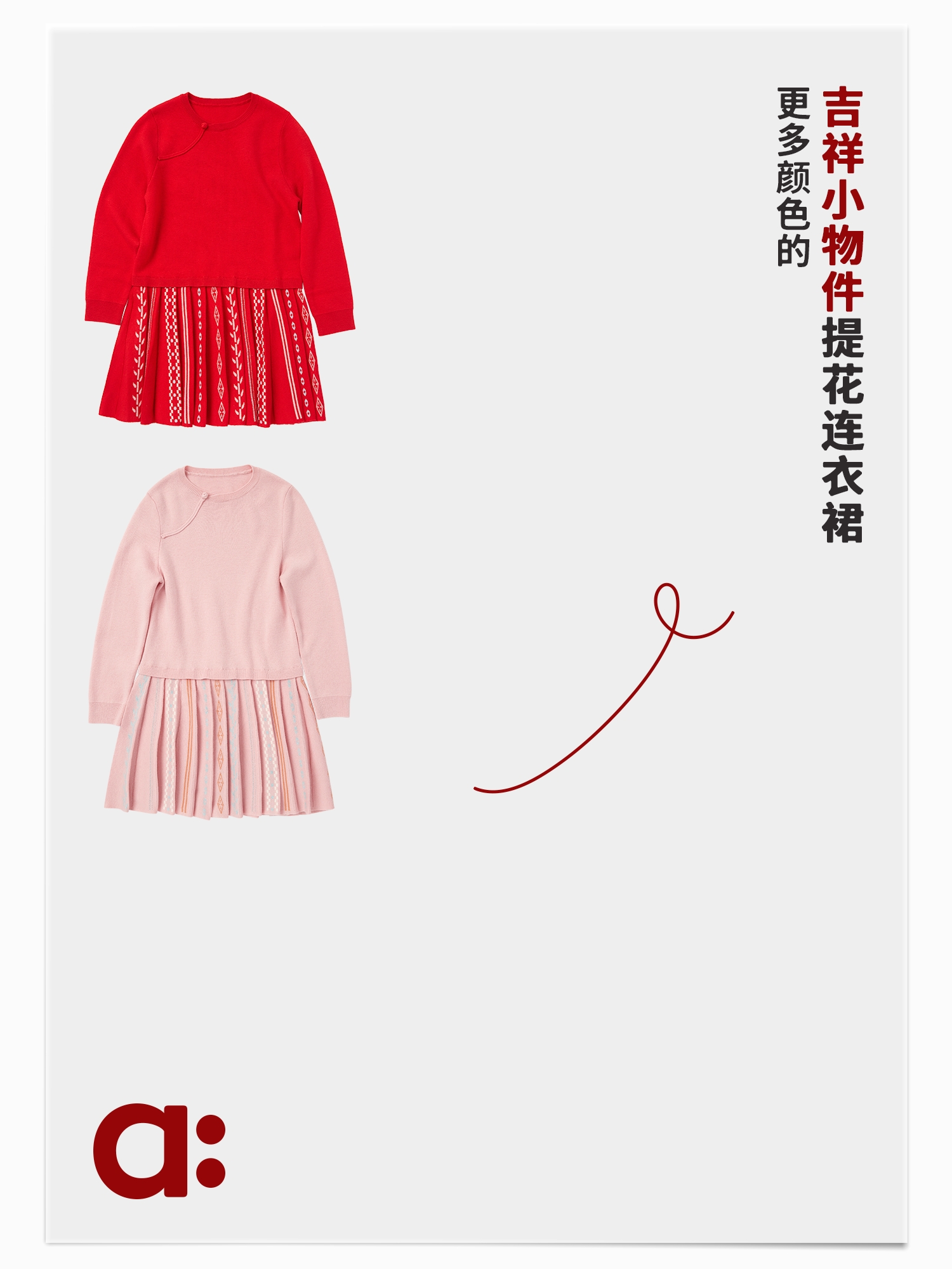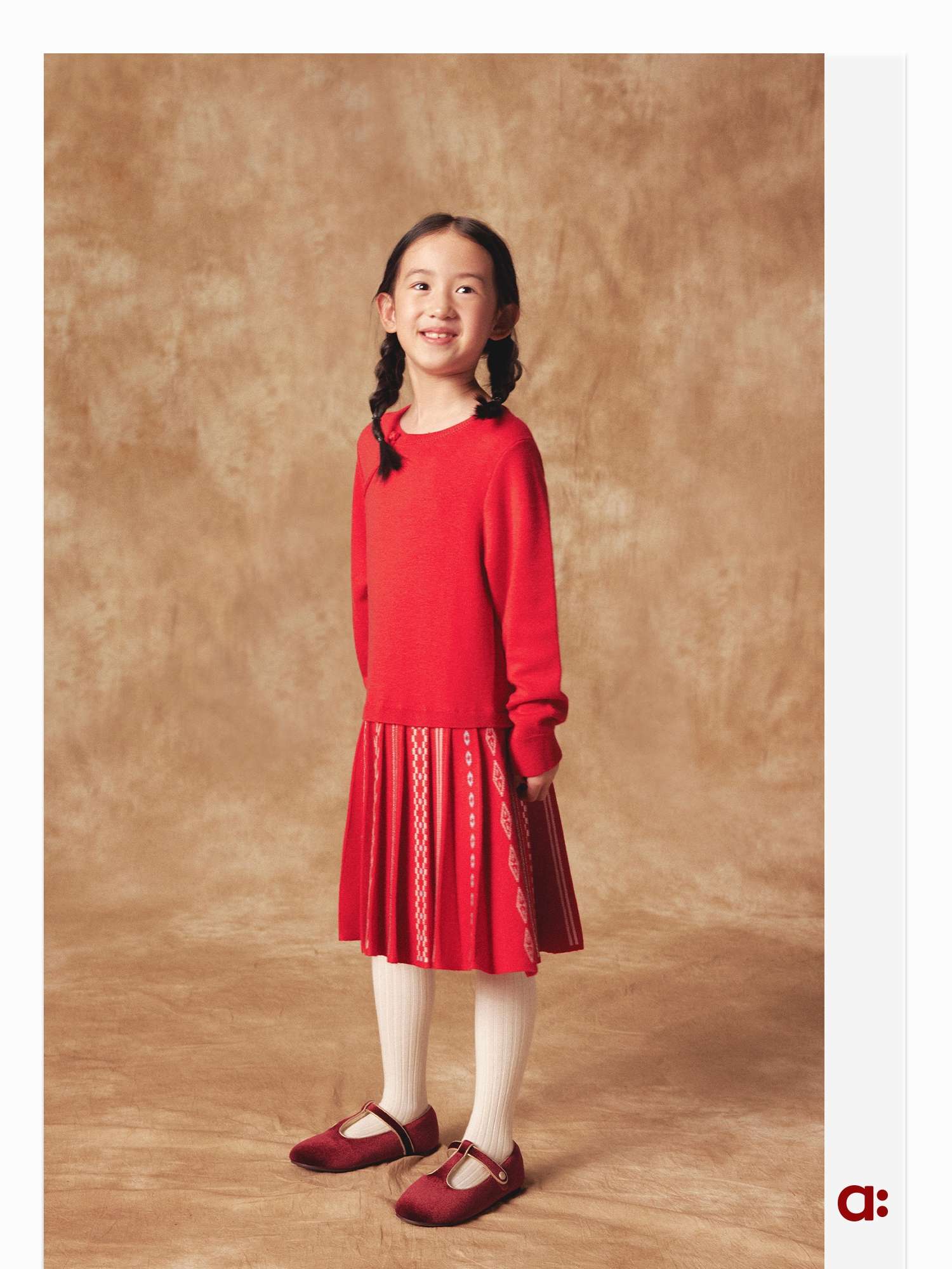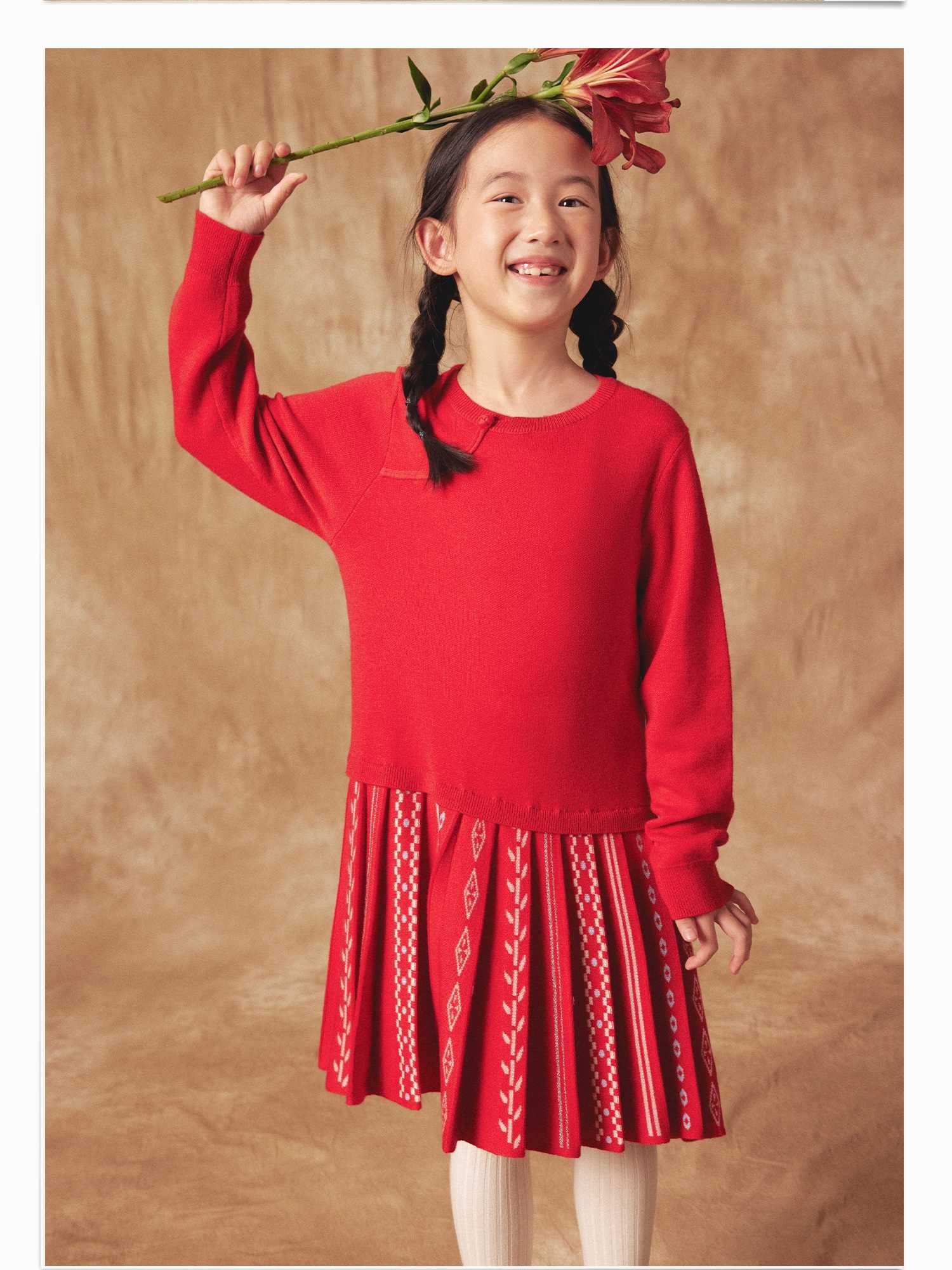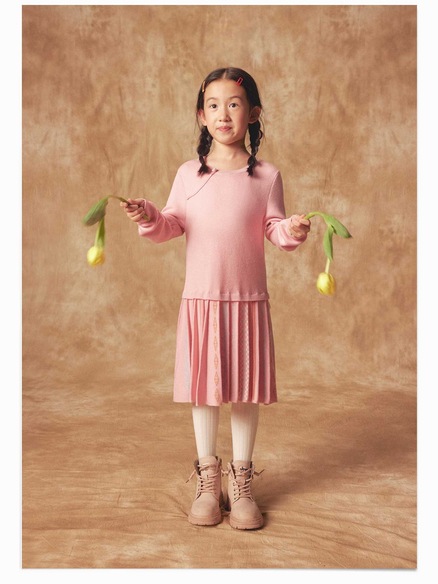 allblu幼岚儿童连衣裙女童秋冬新款提花百褶裙保暖舒适女裙