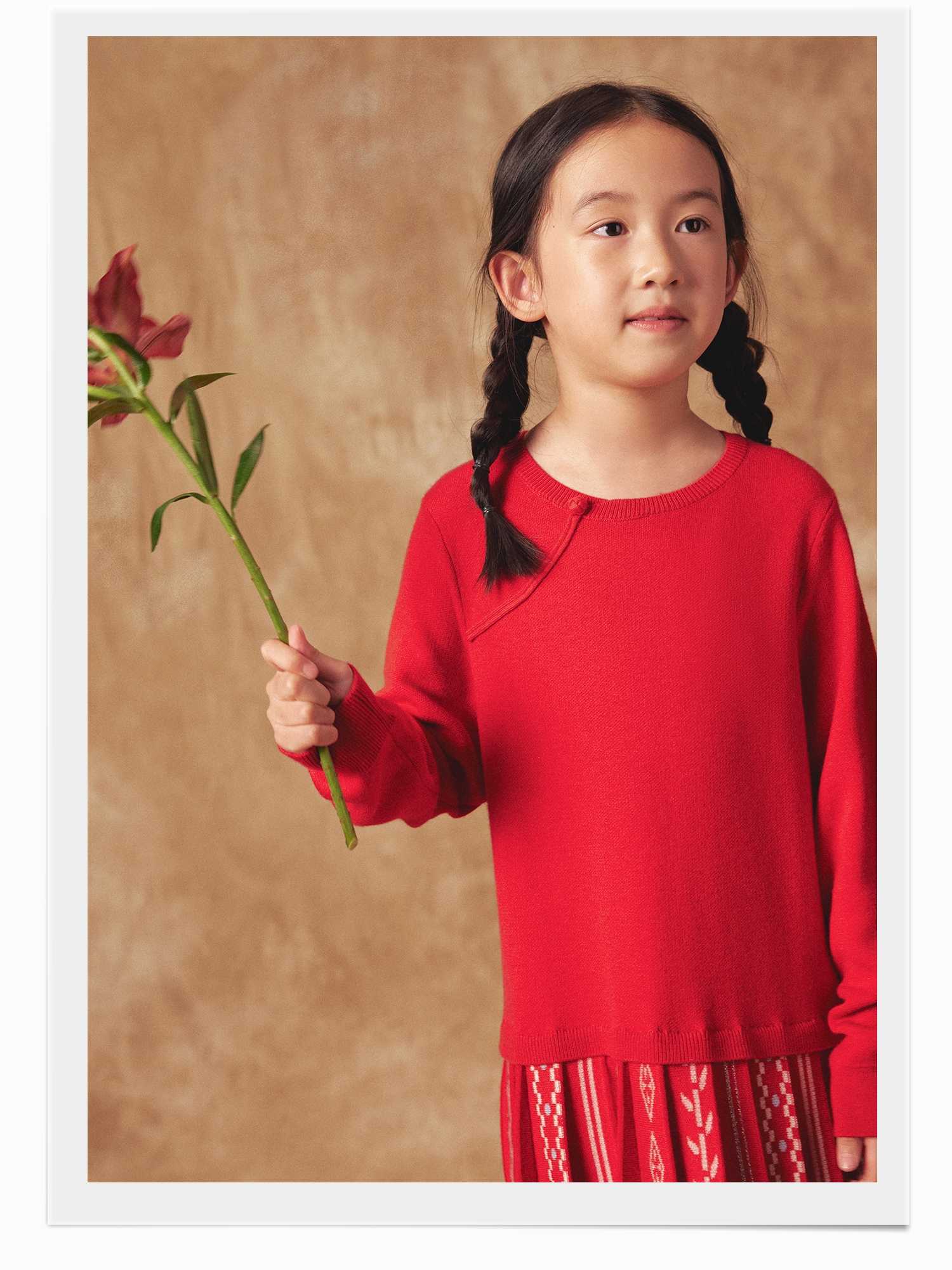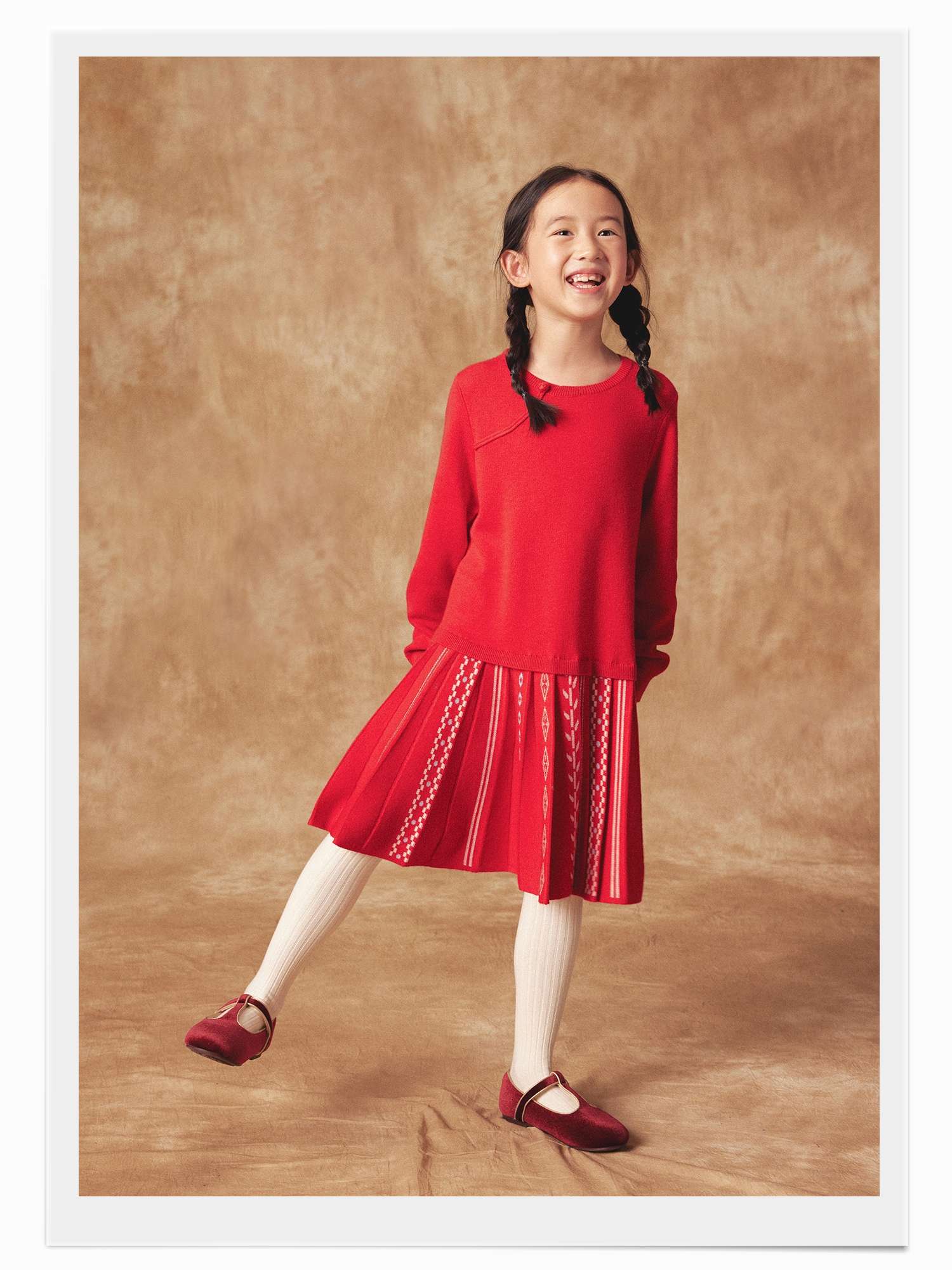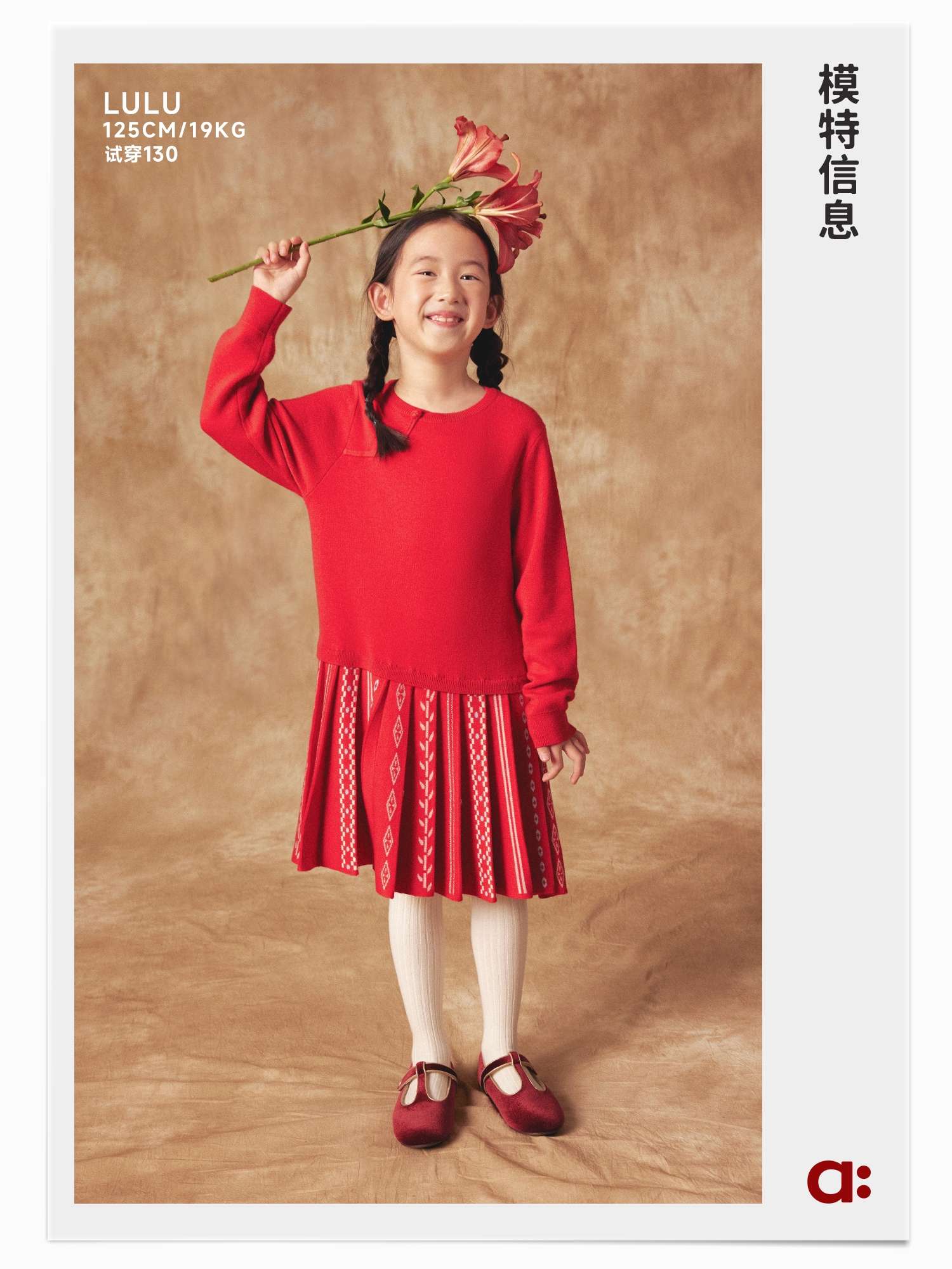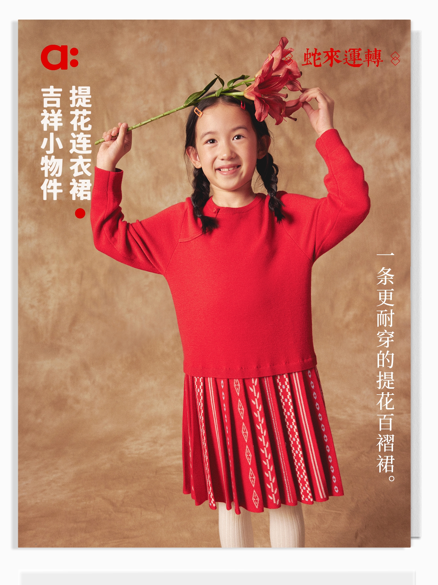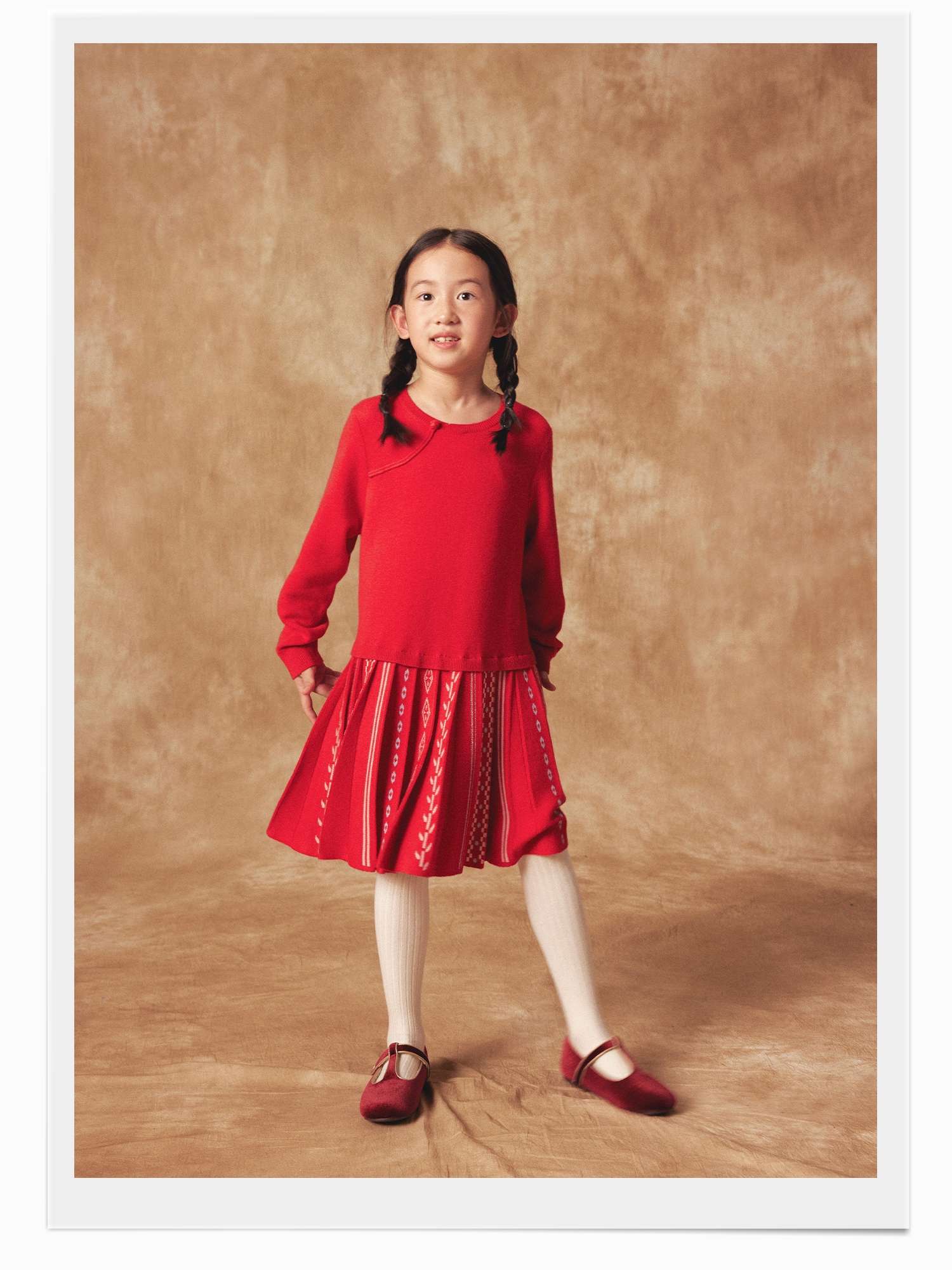 allblu幼岚儿童连衣裙女童秋冬新款提花百褶裙保暖舒适女裙