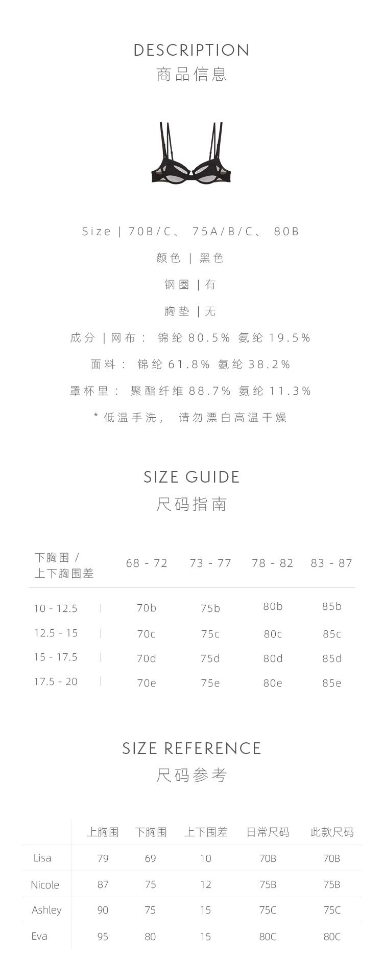 Her Senses|重构 12B149YY 网眼双层3/4钢圈文胸 [ 黑BK01 ]