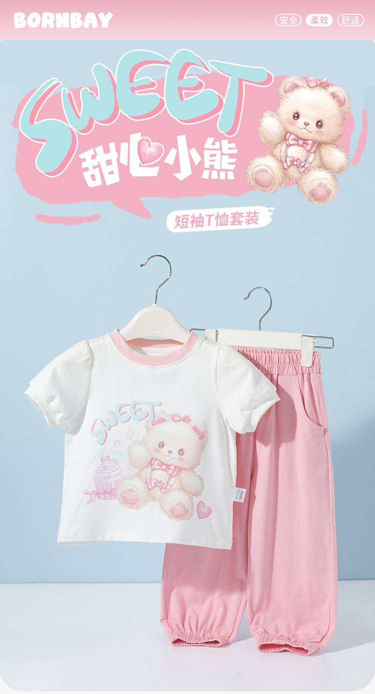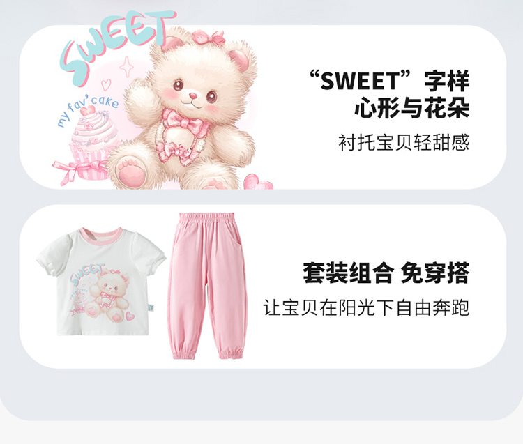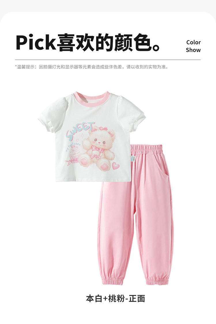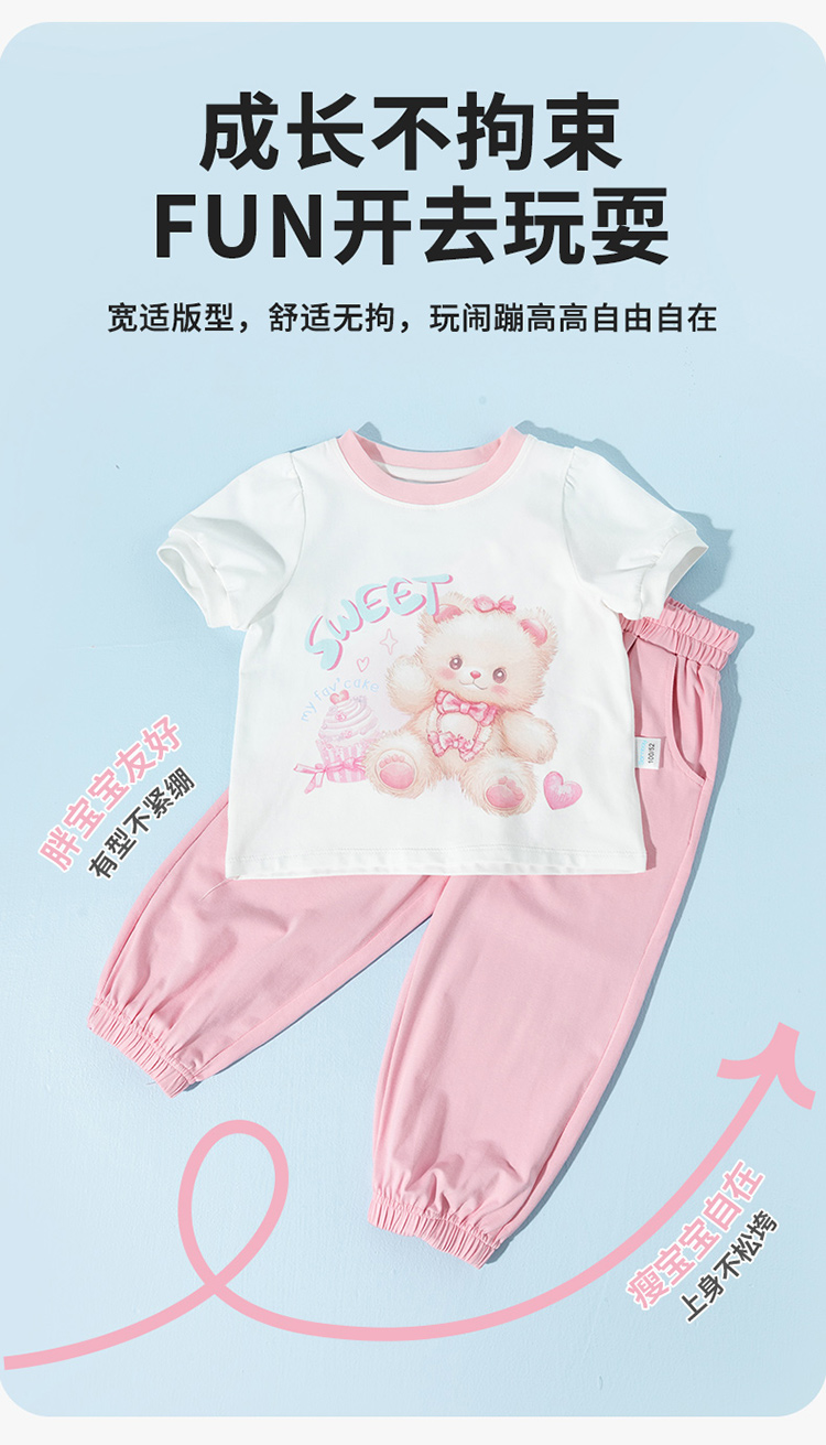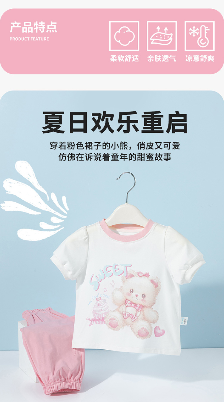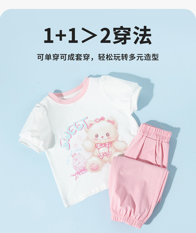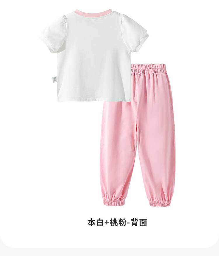 【贝贝怡】 凉感短袖防蚊长裤套装夏季新款女童冰感T恤宽松透休闲裤套装ZB2ET058