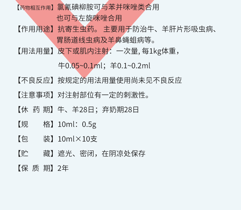 华畜5%氯氰碘柳氨钠注射液10ml*10支 肝片吸虫 牛羊驱虫药