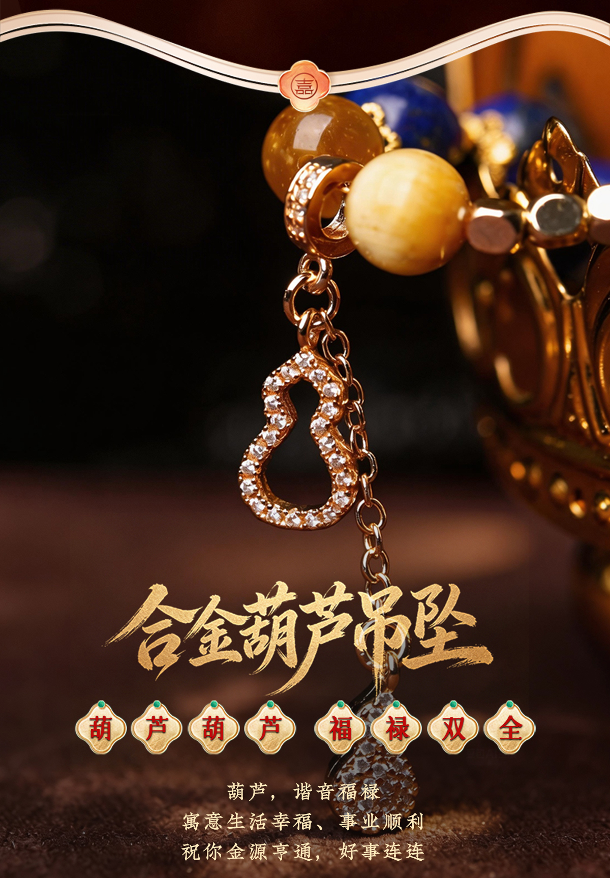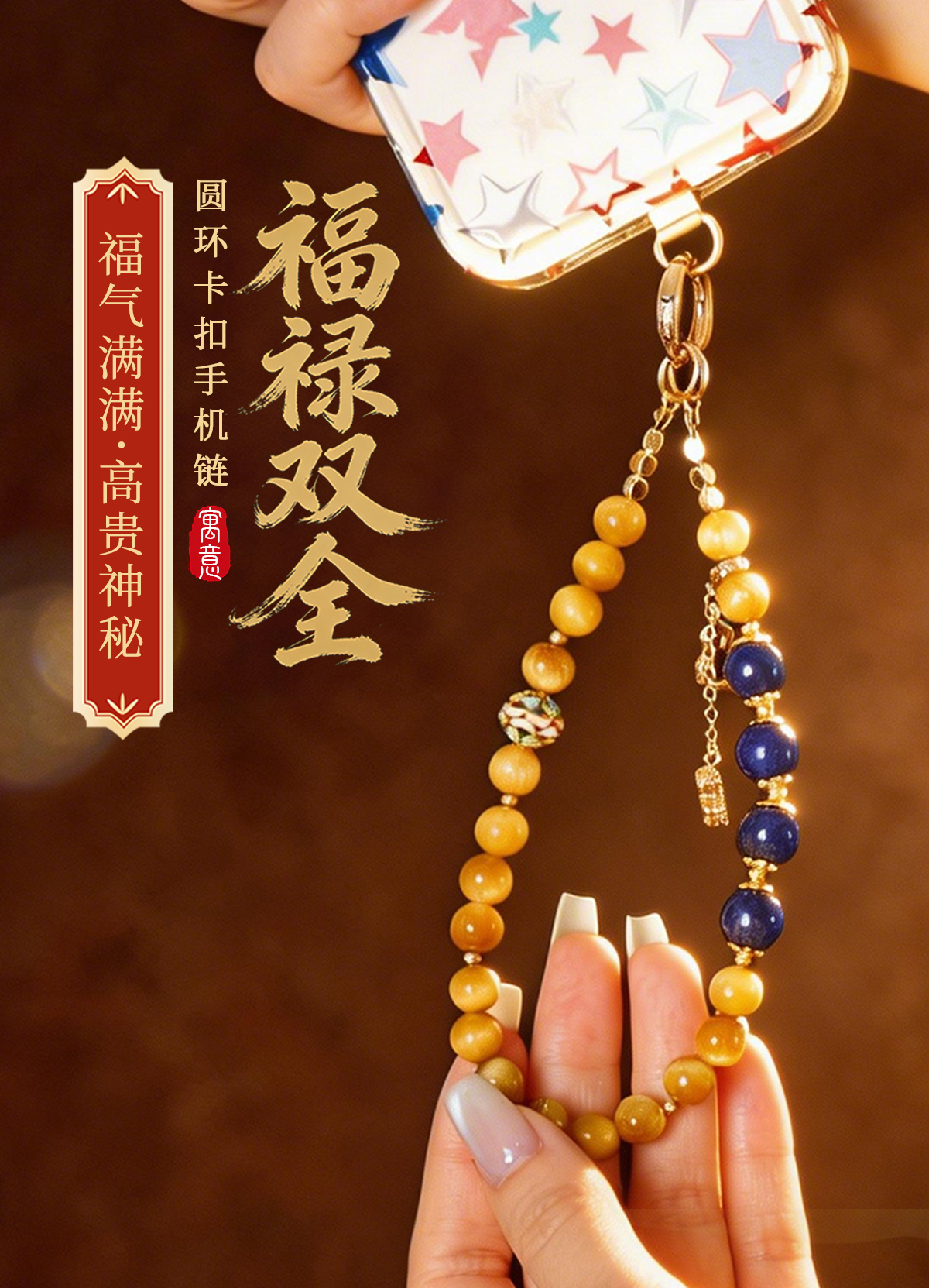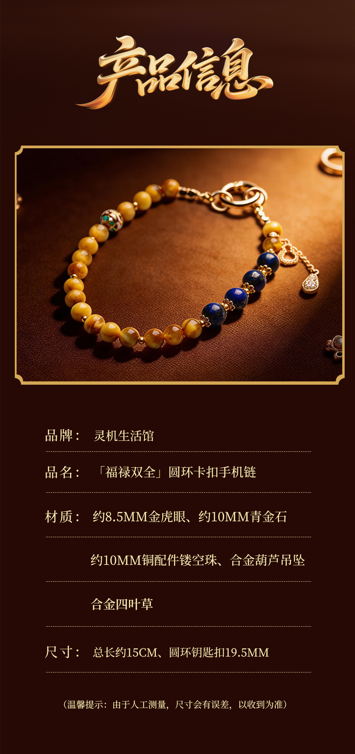 灵机麦玲玲「福禄双全」圆环卡扣手机链相机防丢挂饰安全绳鎏金色