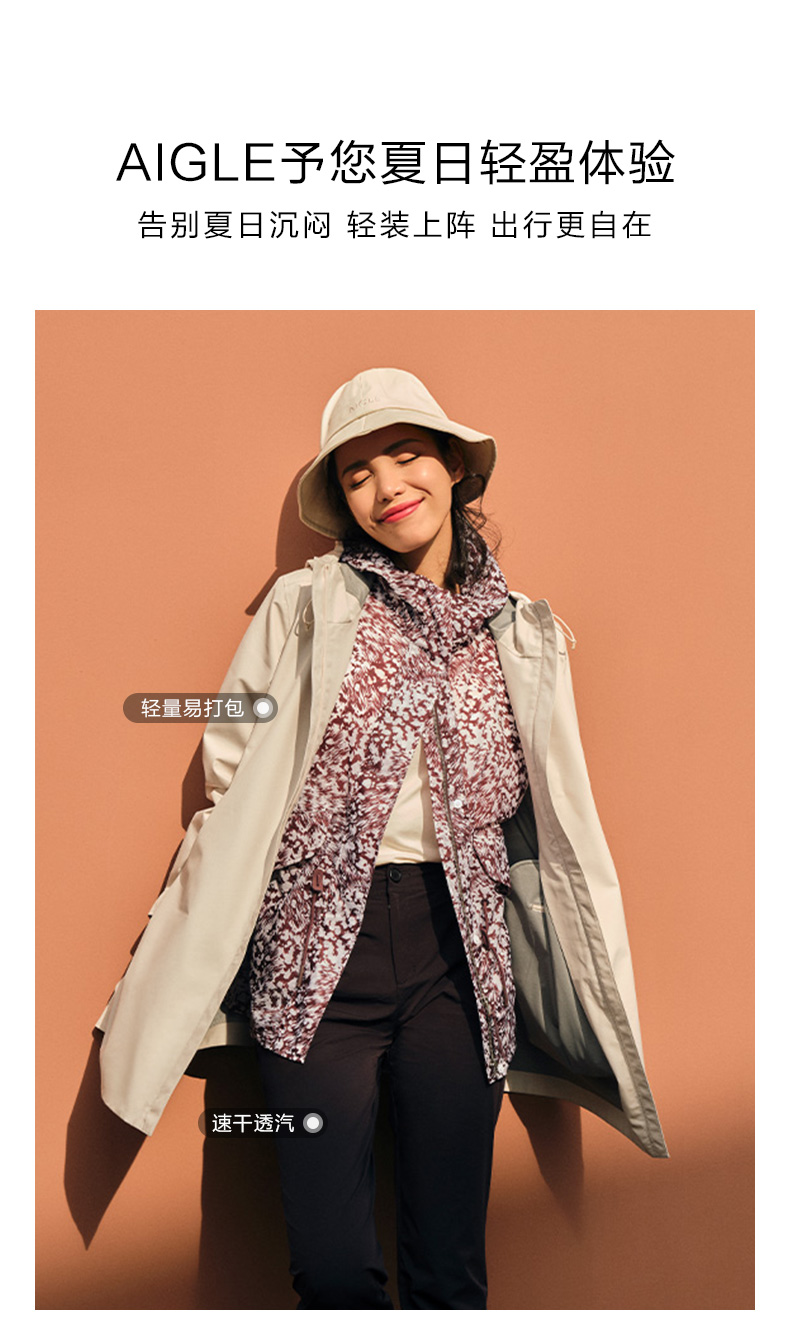 【4F】AIGLE艾高2022年春夏新品AS22WOUT04R女士防泼水易打包时尚夹克