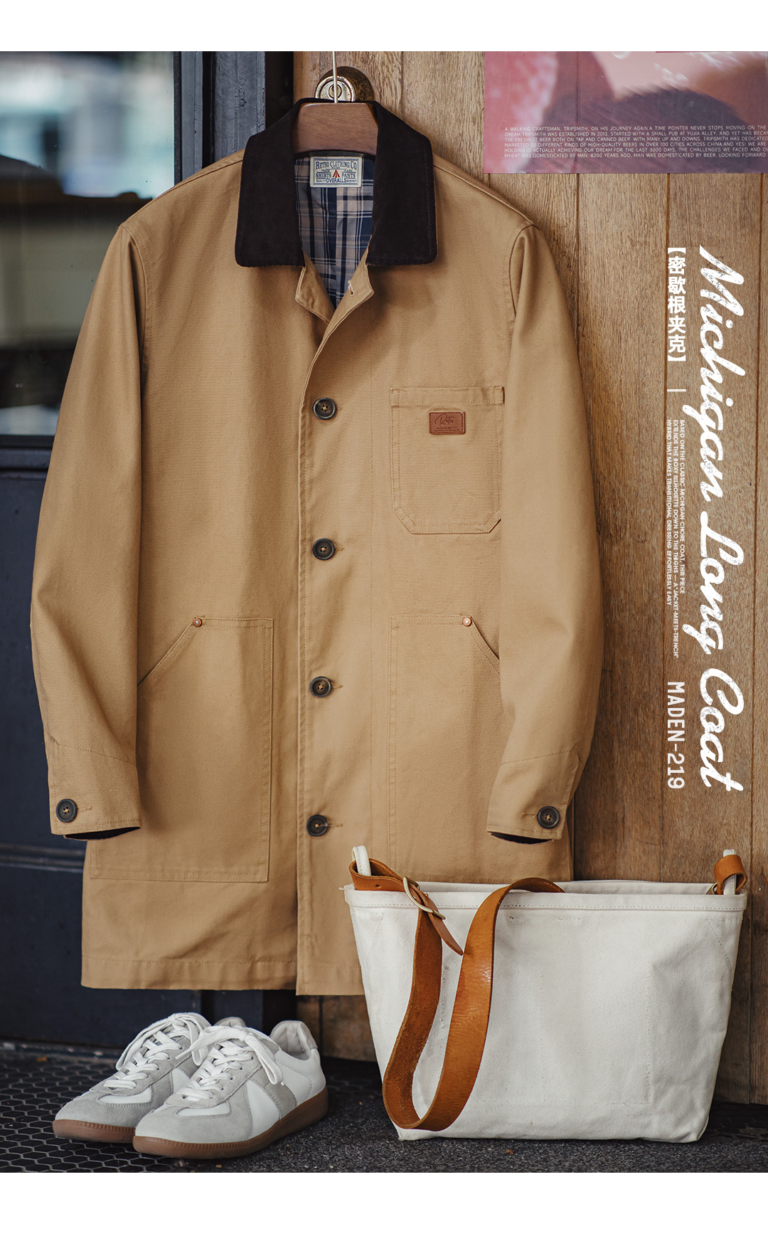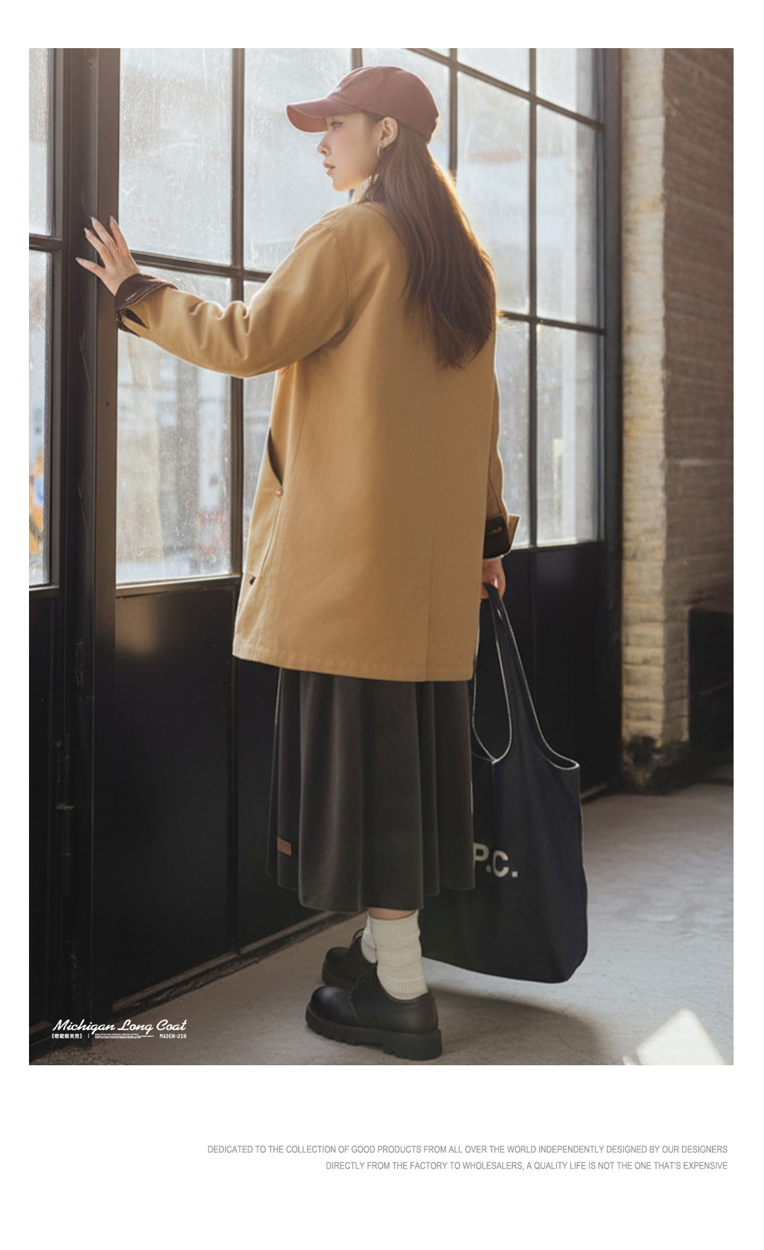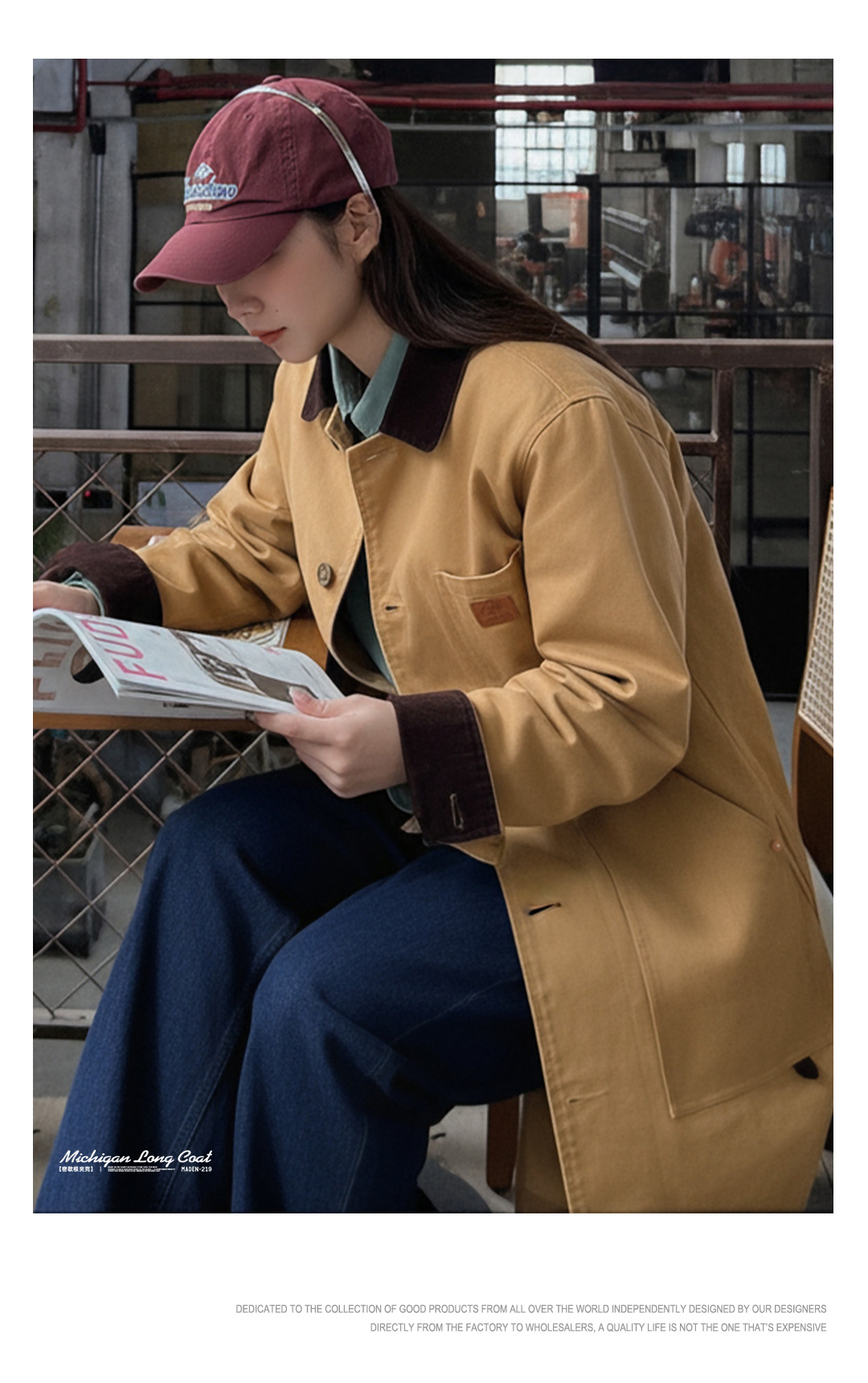马登美式复古密歇根风衣卡其色巴恩风中长款廓形夹克外套女士秋冬