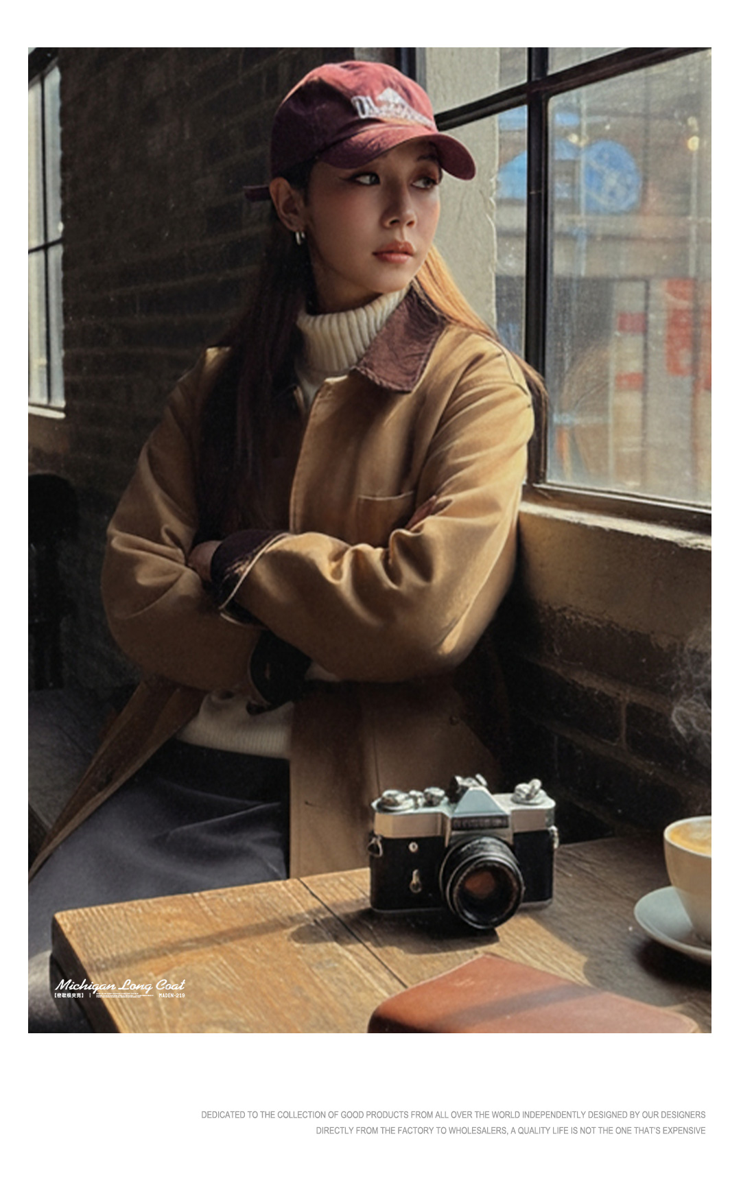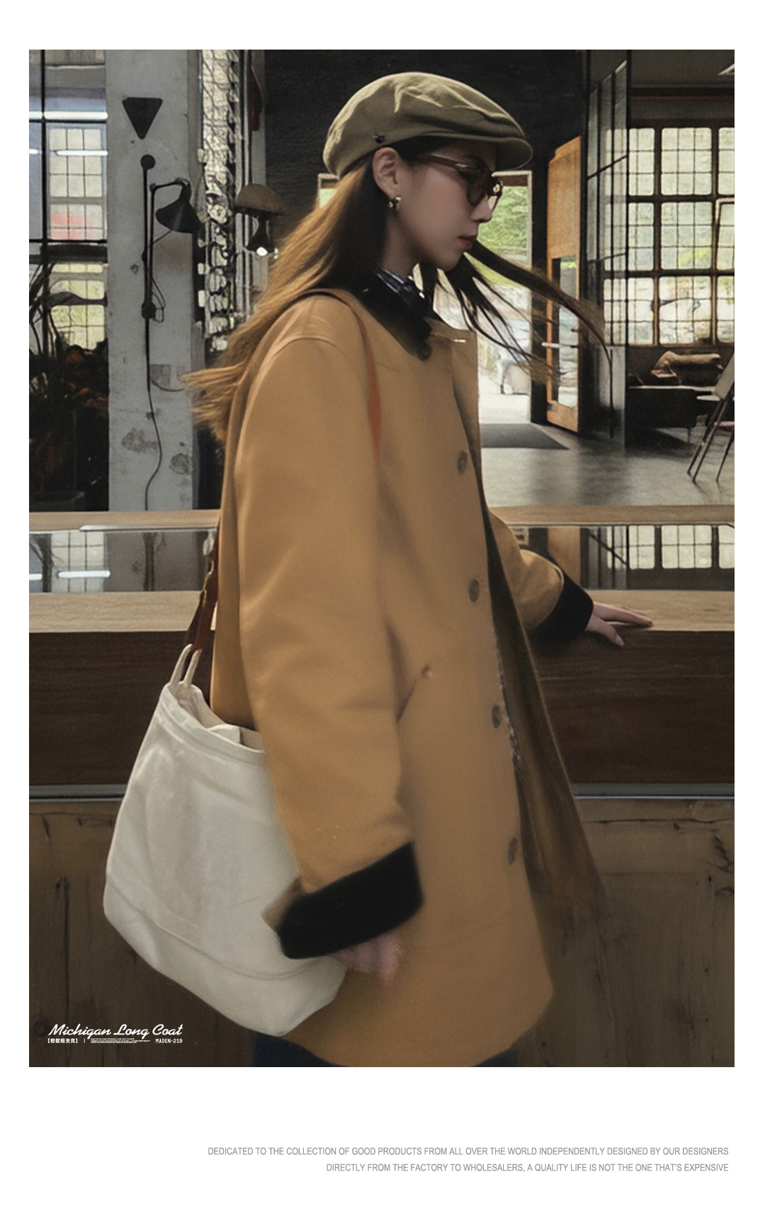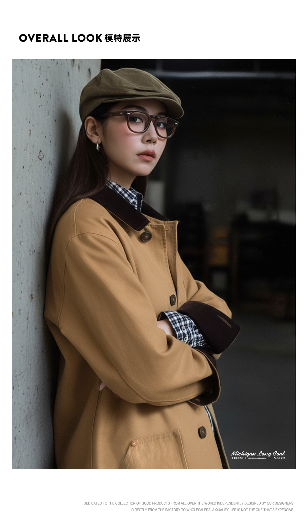 马登美式复古密歇根风衣卡其色巴恩风中长款廓形夹克外套女士秋冬