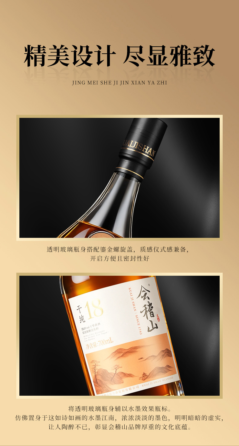 会稽山官旗 绍兴正宗黄酒干纯18糯米老酒700ml*1脱糖干型非遗传承发酵酒