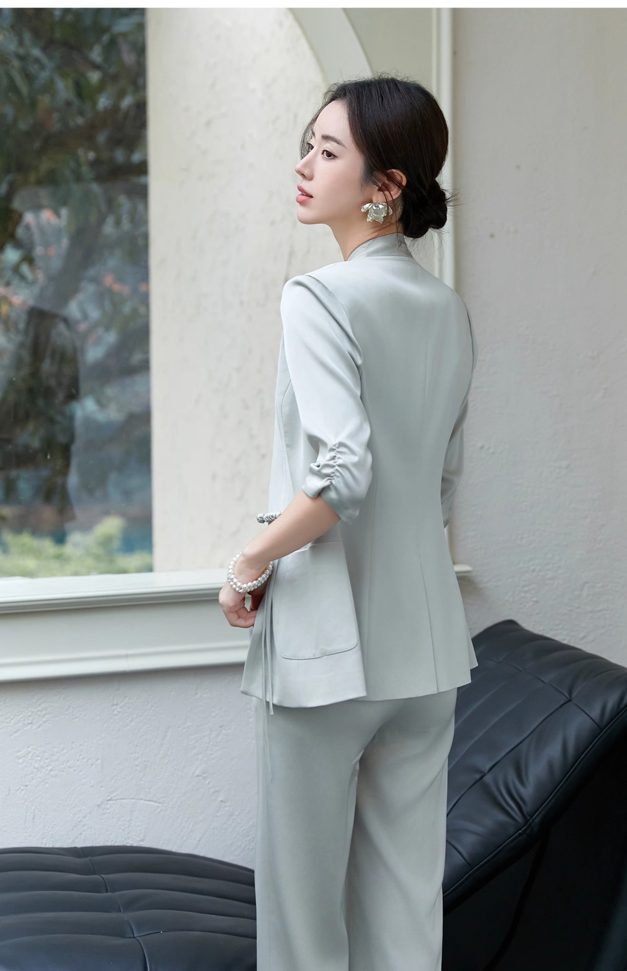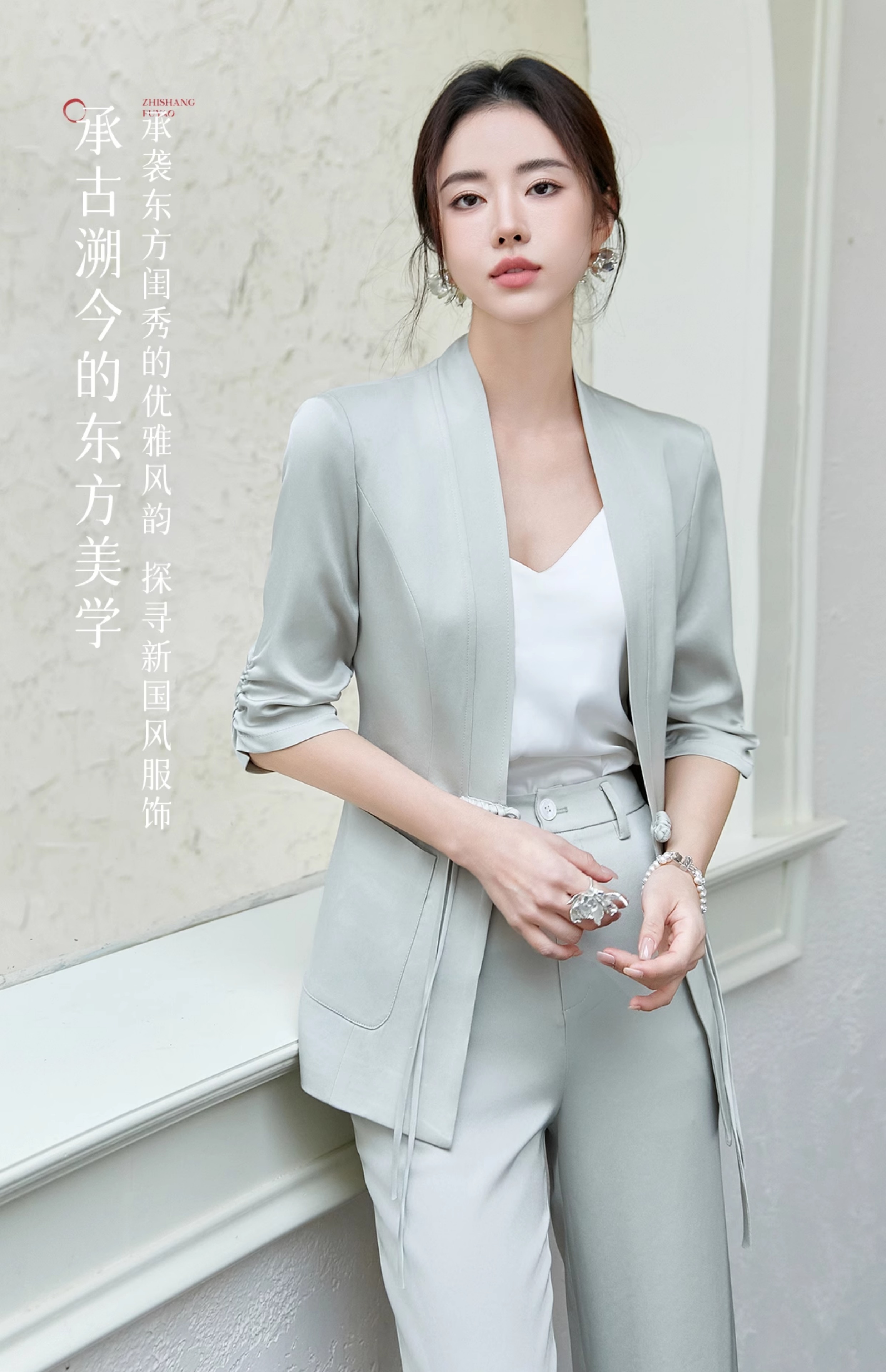 FUYAO扶摇 新中式盘扣西装两件套女2025春夏新款时尚套装国风女装