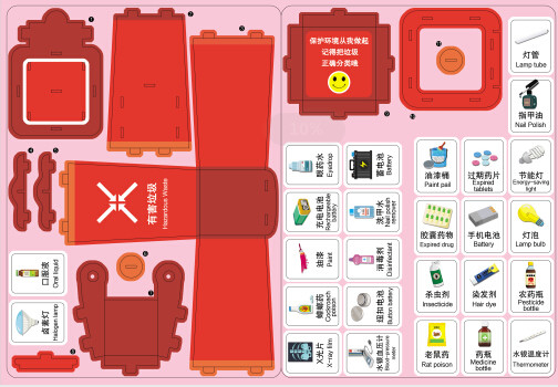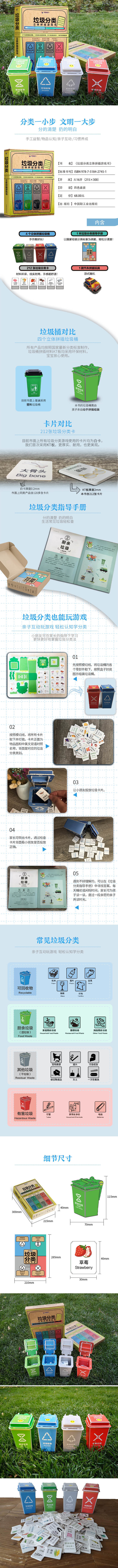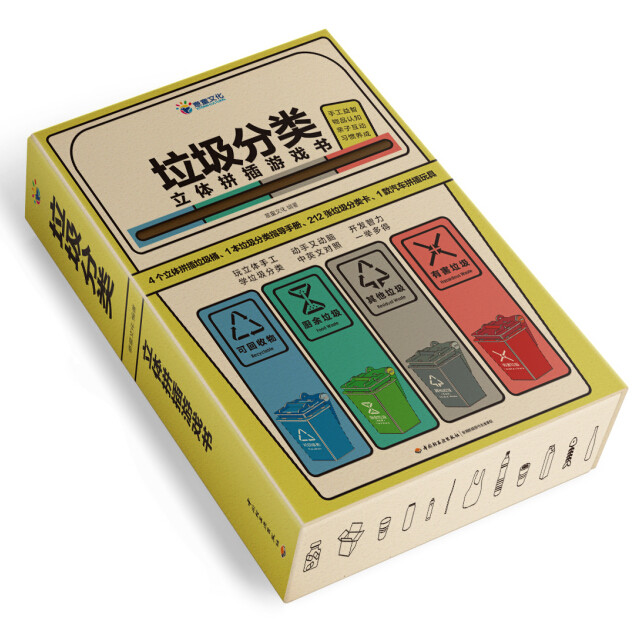这是一套将垃圾分类知识与立体手工益智游戏完美结合的游戏书,里面包含了4个立体拼插垃圾桶,212张垃圾分类卡片,以及一本精美的垃圾分类指导手册。