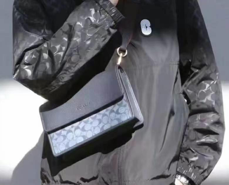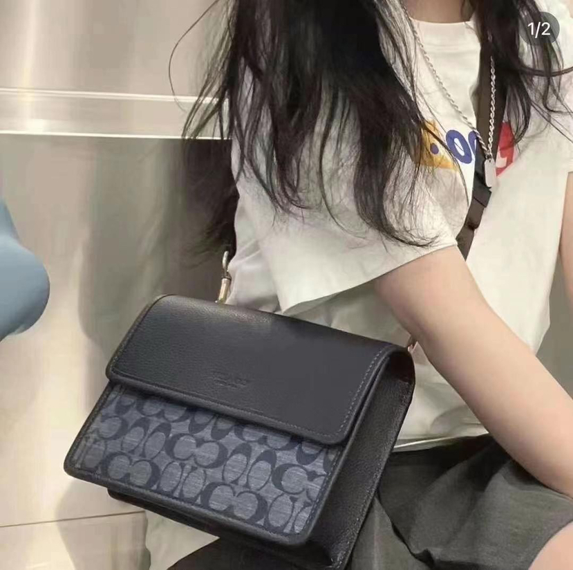 很香啊💰1250元直邮🇺🇸Coach Turner香布雷斜挎包🔥经典 SignatureC 印花运用在各种全新包型上、赋予各种色彩,荔枝纹牛皮拼接,轻便实用,高级感满满! 送男友送老公必备💢25x16.5x5cm。女孩子背也超好看。