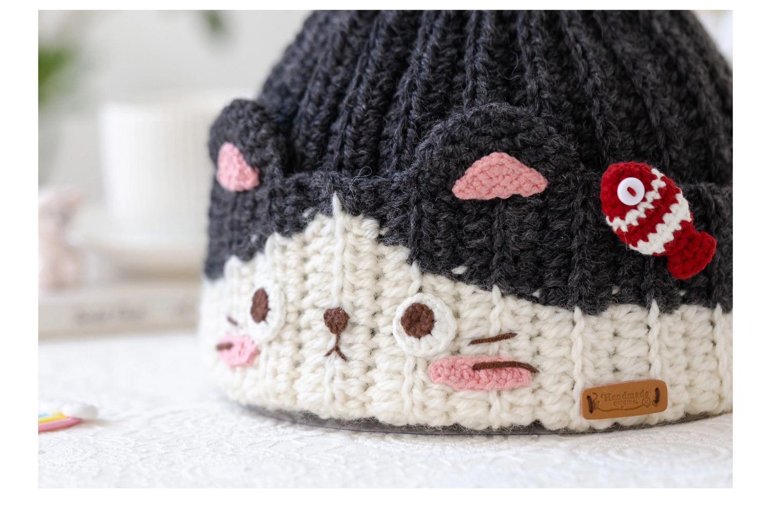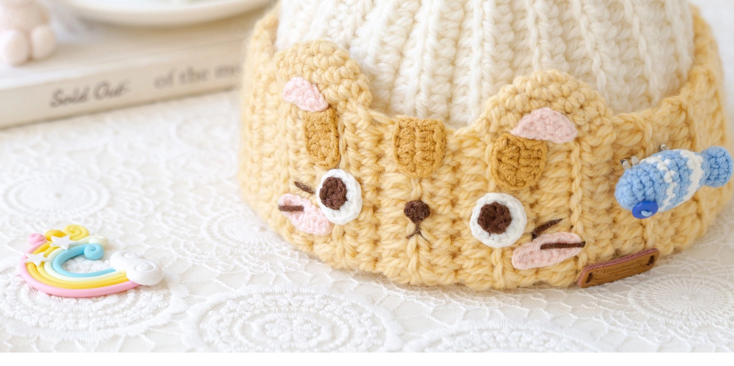 苏苏姐家猫咪亲子冷帽手工diy编织钩针莫兰迪8羊毛毛线团材料包预