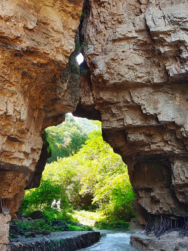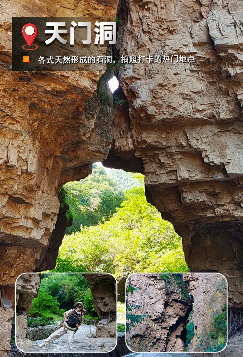天门洞如天工开物,是峡谷中的一处天然石洞,石洋湖似明珠镶嵌,是南石洋大峡谷的标志性景观之一,是拍照打卡的热门地点,游客们都会记录下这一独特的自然奇观。