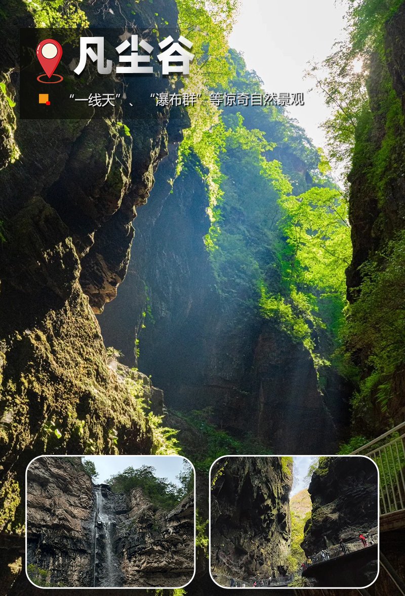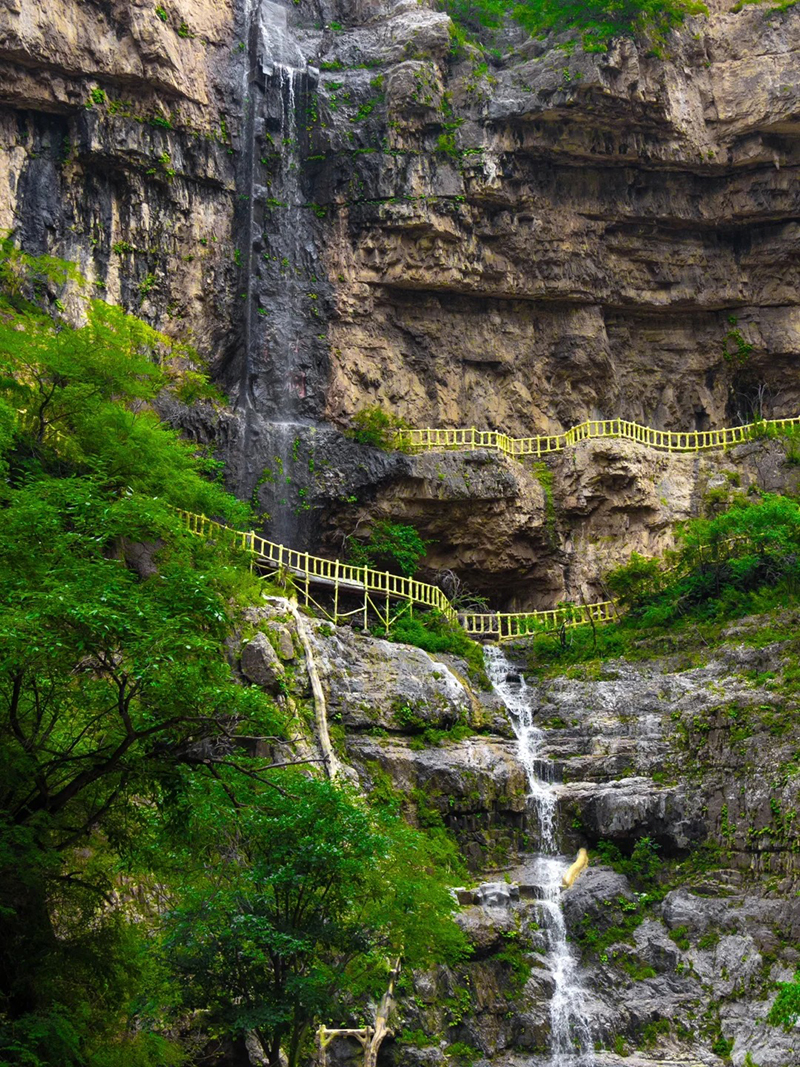 瀑布群分布在峡谷的徒步路线上,游客可以一边徒步一边欣赏美景。大小不一的瀑布,形态各异,有的如银练垂挂,有的如珠帘轻拂。