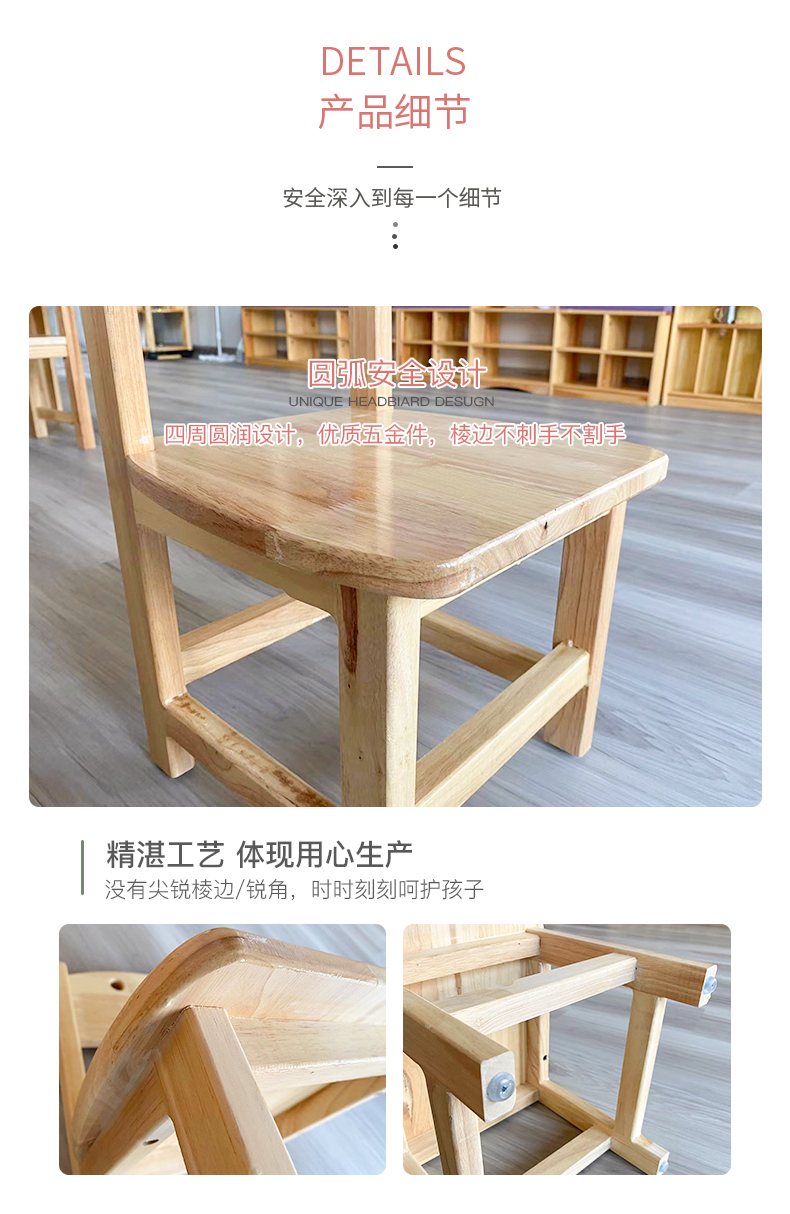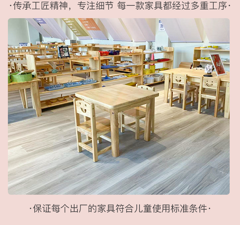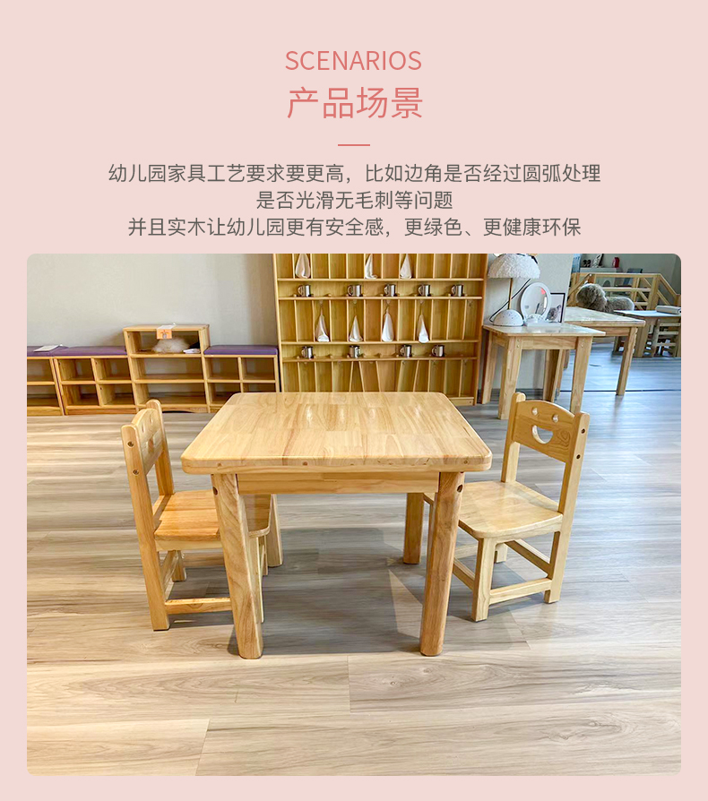 幼儿园松木六人桌实木桌子环保漆圆角设计松木桌椅