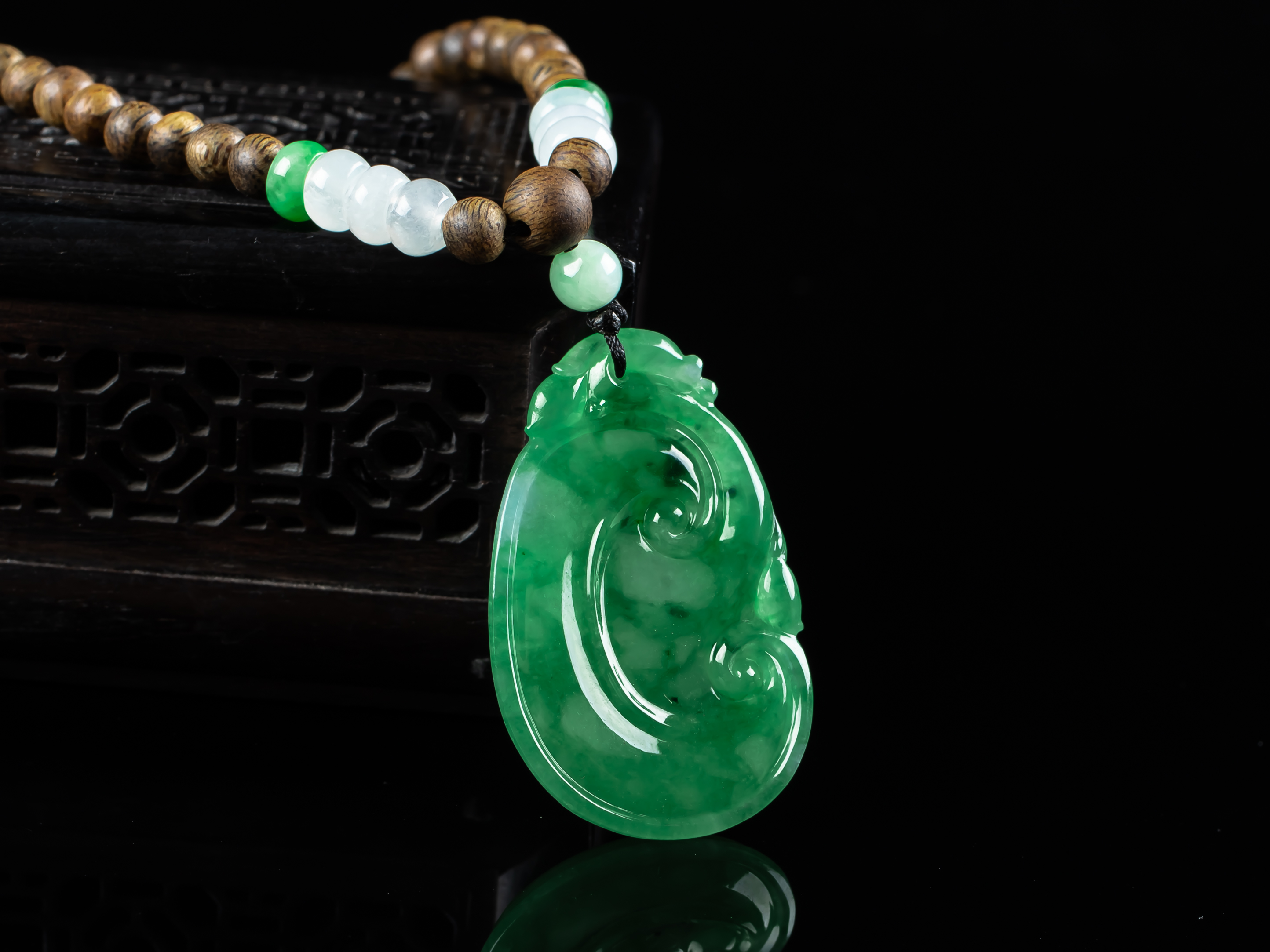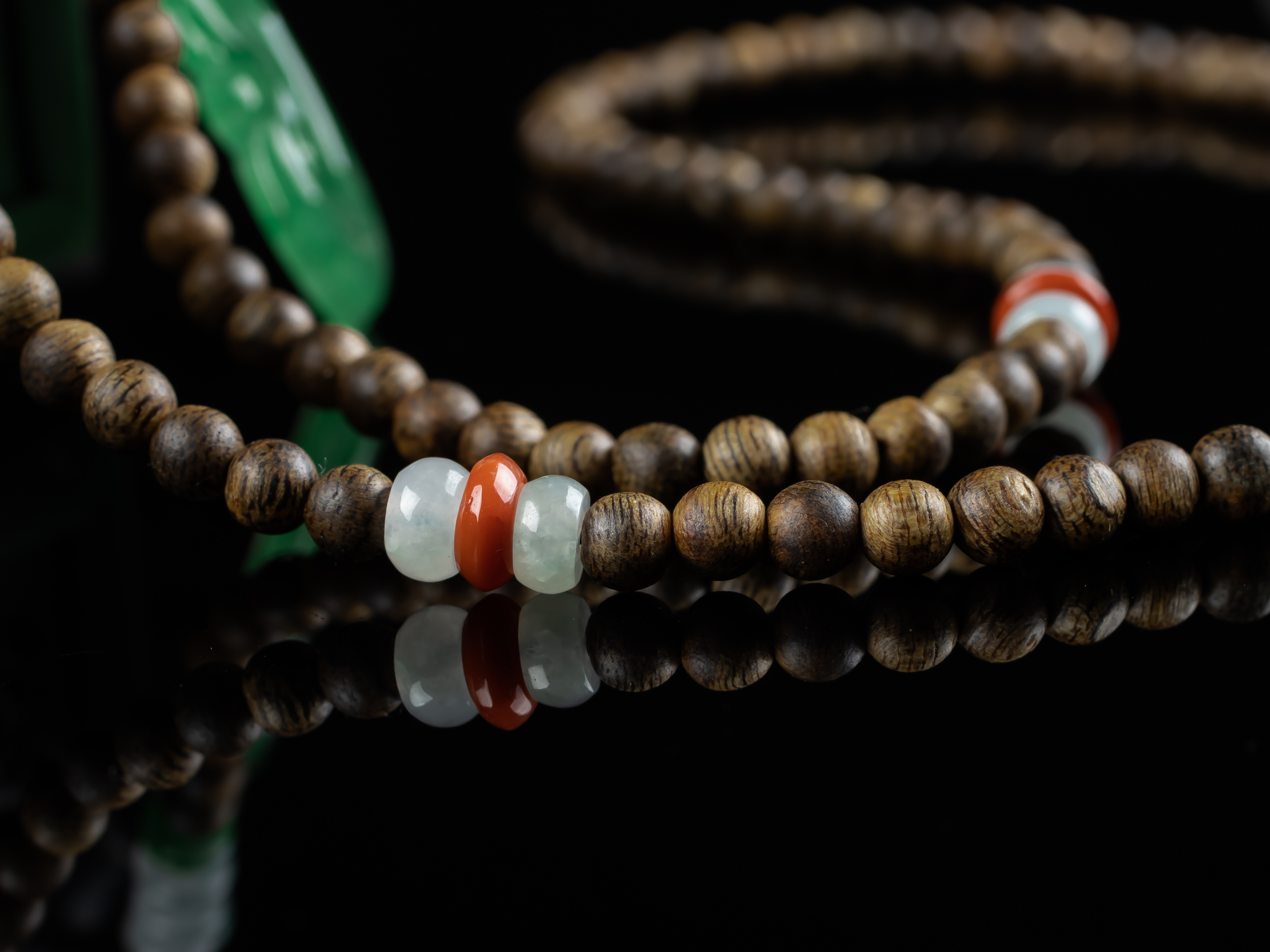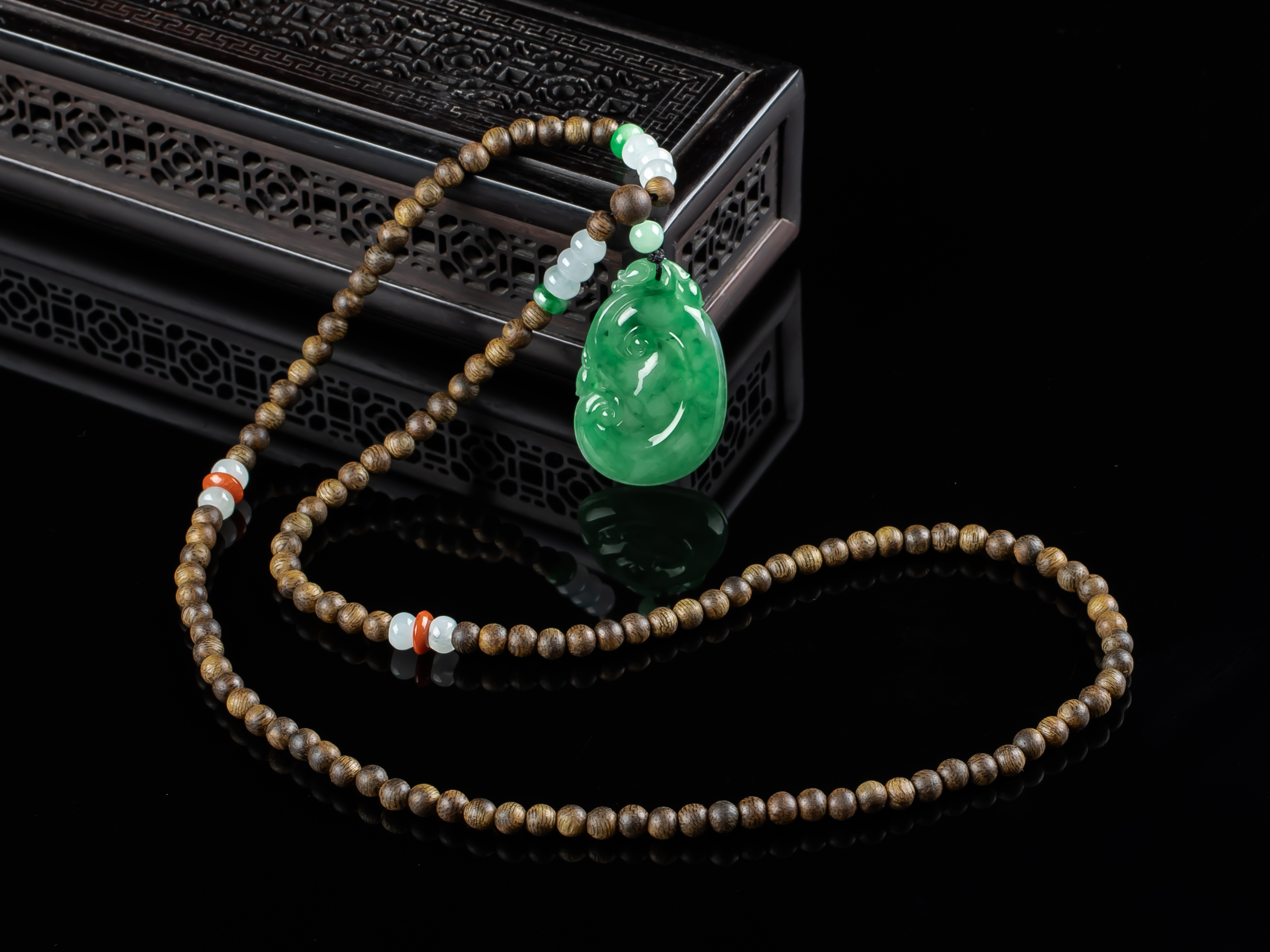 原创沉香+翡翠满果绿如意挂件,天然沉香圆珠4.8mm,香味清甜自然,配件:翡翠、南红。满果绿色糯底翡翠如意,24.5*37.8*4.7mm,完美无纹裂,款式简约大方,吉祥如意。