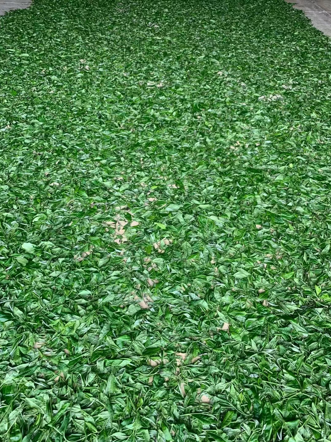 采摘之后,放在竹萁上,离地摊晾、萎凋。
