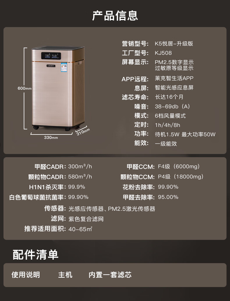 莱克(LEXY)空气净化器KJ508