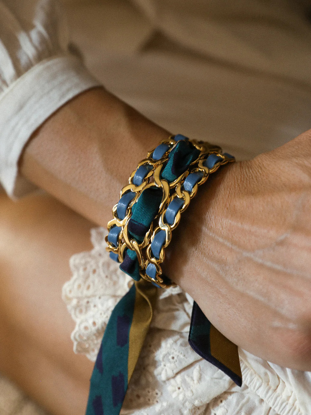 北京仓|AN-NEE-C3G-DECEMBRE-BLEU-棕绿色 夏帕诺瓦 2cm 丝巾手镯[法国设计师]